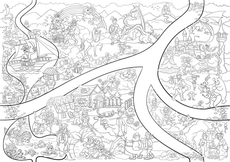 Scopri il divertimento per piccoli e grandi con questo davvero grande libro da colorare a tema fiabe nel formato 64 × 90 cm. Grazie alla carta con alta grammatura 200 g/m² puoi usare senza preoccupazioni pastelli, pastelli a cera e acquerelli. Acquistando tutti e 6 i tipi è possibile unirli in un’unica grande opera collegata da un percorso.