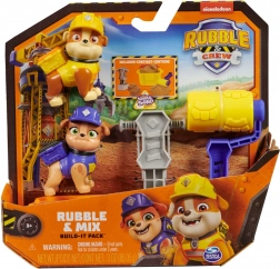 Rubble e Mix, con equipaggiamento da costruzione giallo, motivano i bambini al gioco narrativo e a vivere avventure insieme sul cantiere.