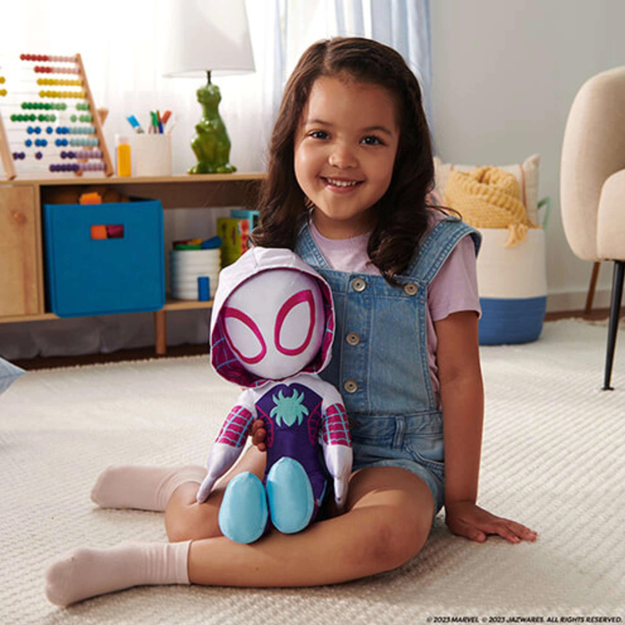 L’amatissima eroina Ghost-Spider (Gwen Stacy) arriva in versione soffice peluche della serie Spidey e i suoi fantastici amici. Grazie alla qualità costruttiva con dettagli del viso ricamati e al caratteristico costume bianco con accenti rosa e blu, è immediatamente riconoscibile e pronta per il gioco e le coccole di ogni giorno.
