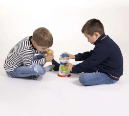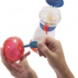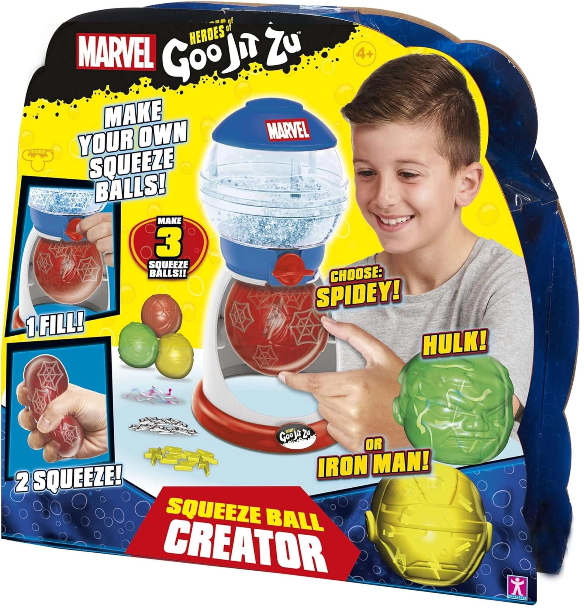 Con questo set interattivo i bambini creano palline antistress uniche, piene di colori, glitter e decorazioni. Il serbatoio centrale trasparente consente un riempimento facile, mentre la rotella rossa aiuta a chiudere la pallina in sicurezza. Nella confezione trovi tre palline colorate (rossa, verde, gialla) con motivi in rilievo dei supereroi preferiti.