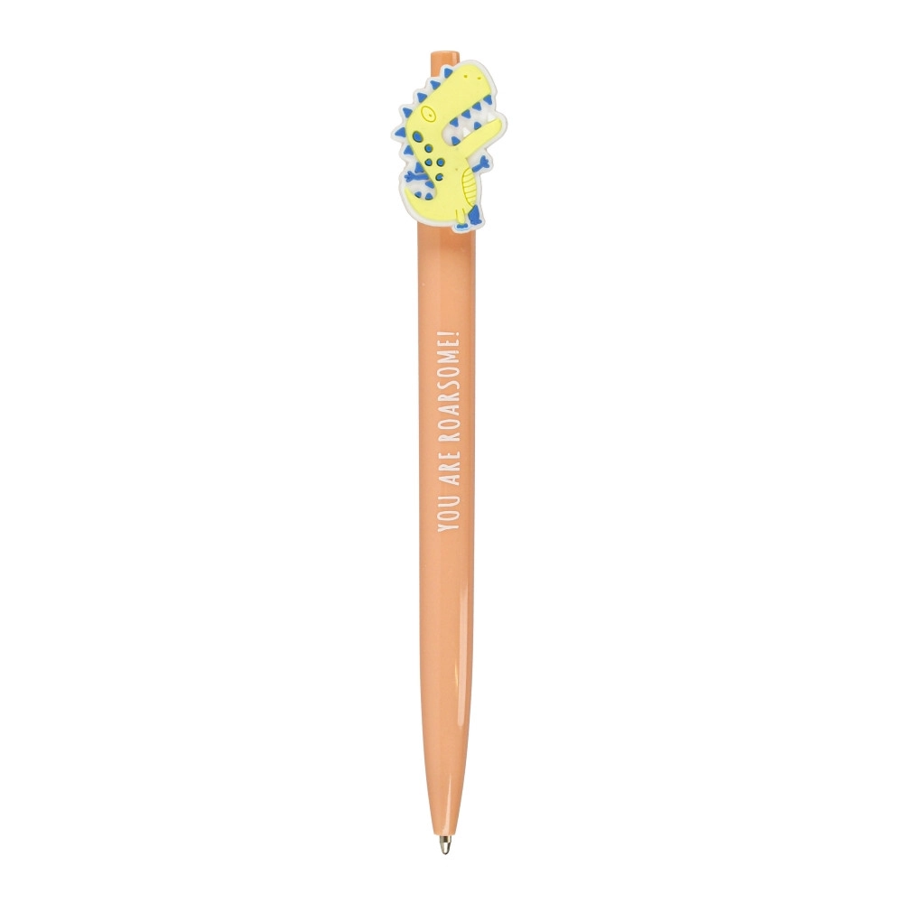 Scopri la penna a sfera dal design giocoso con un simpatico topper dinosauro, che rende ogni scrittura un momento di divertimento. Grazie al corpo sottile e al meccanismo retrattile, è ideale per l’uso quotidiano a scuola, per appunti e note creative.