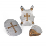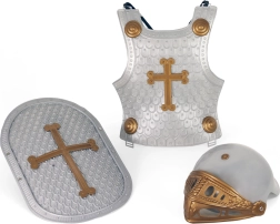 Il set include tutto ciò che i piccoli cavalieri hanno bisogno per realizzare i loro sogni da eroi – spada con fodero, scudo, elmo e gilet.