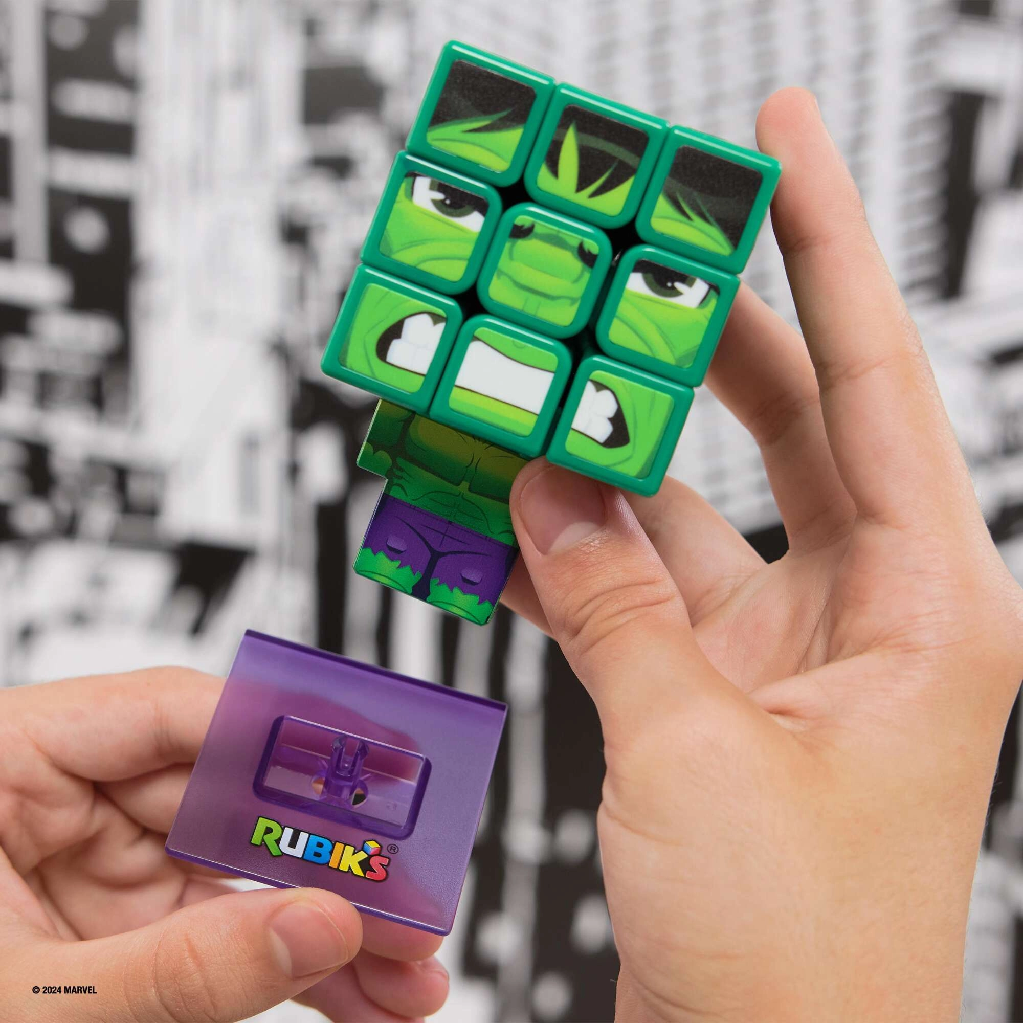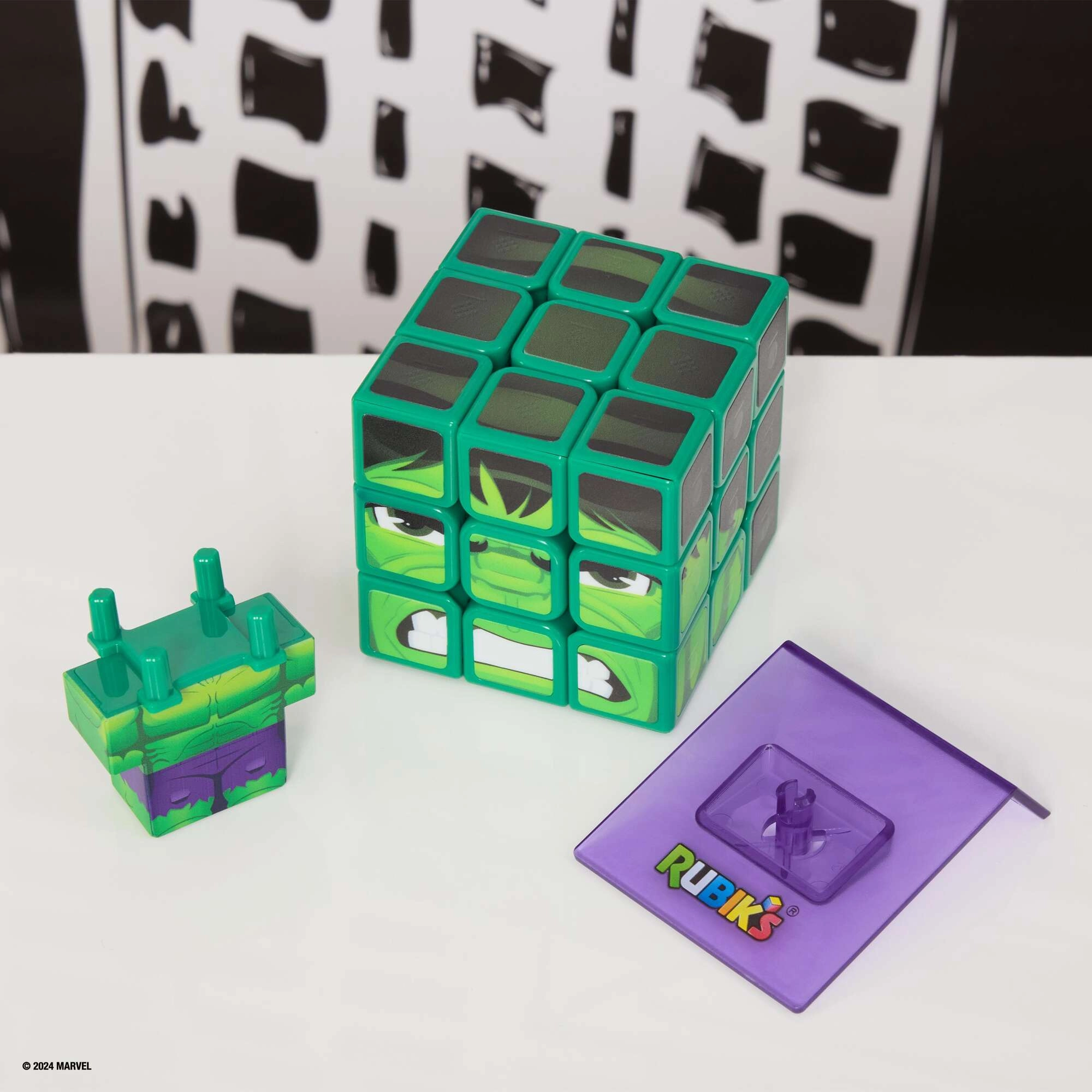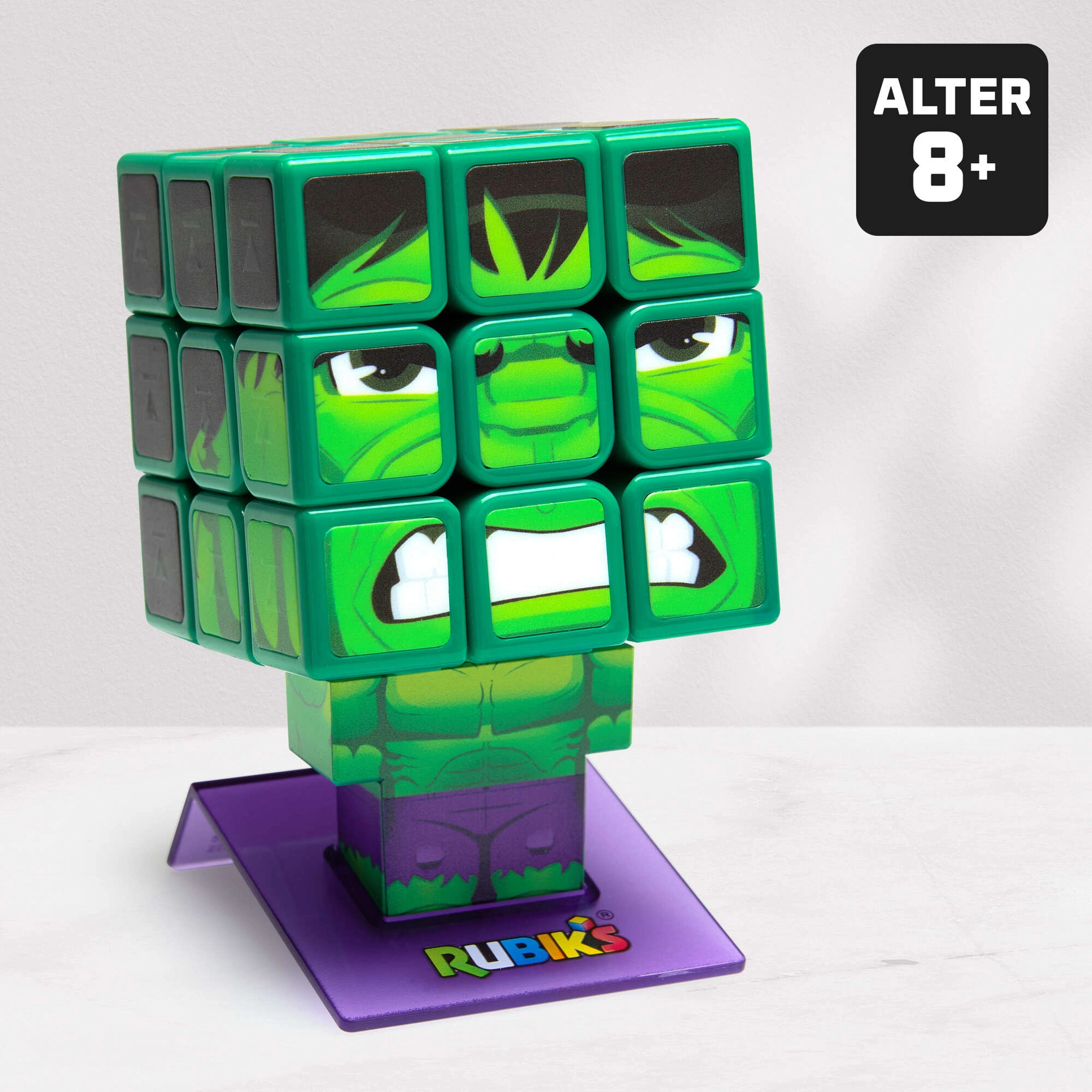 Scopri il rompicapo iconico in veste eroica: Rubik 3x3 HULK Cubers unisce il classico puzzle a un accattivante tema MARVEL. Ruota, mescola e allinea i pezzi per comporre il marcato volto di HULK – poi posa il cubo sul supporto viola e completa con il torso per ottenere una statuetta da esposizione di grande stile.