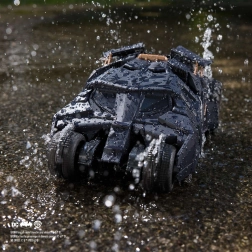 - Design realistico: fedele riproduzione del Tumbler cinematografico con pannelli protettivi e fari distintivi.