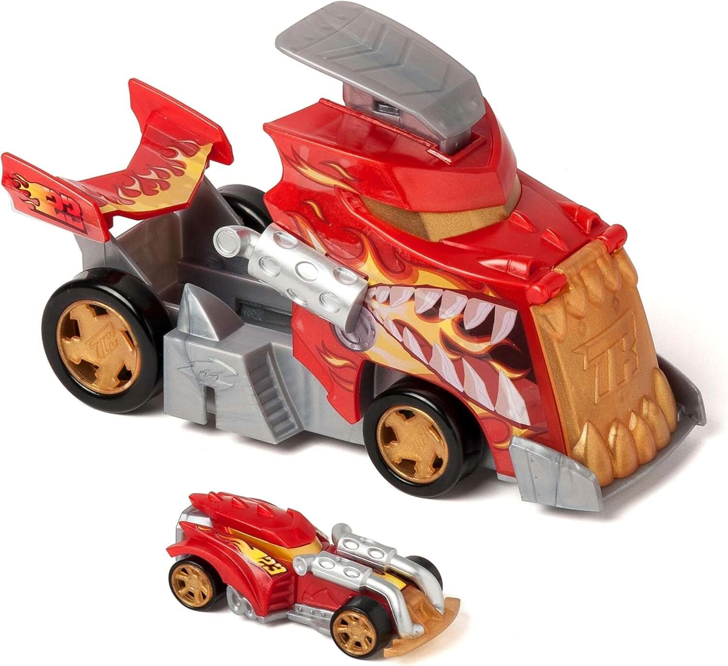 Il set T-Racers Mix ’N Race Fire Launcher Truck offre ai bambini gare dinamiche e libertà creativa. Il camion in stile drago trasporta le tue macchinine e, grazie alla rampa di lancio integrata, le scaglia in avanti a velocità fulminea. Inclusa un’auto da corsa esclusiva, i cui pezzi sono combinabili con altri modelli della linea Mix ’N Race.