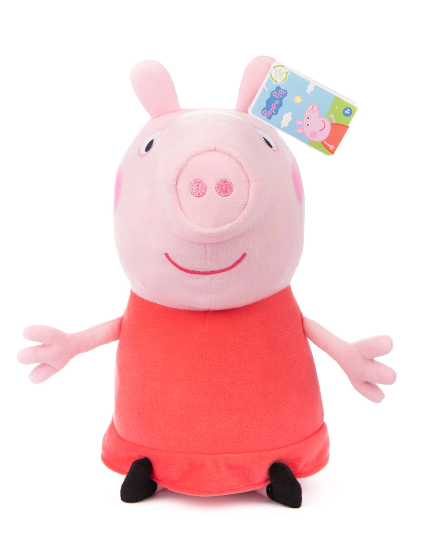 Il grande formato farà felici i fan della serie PEPPA PIG e risalterà sia come decorazione sia come peluche preferito.