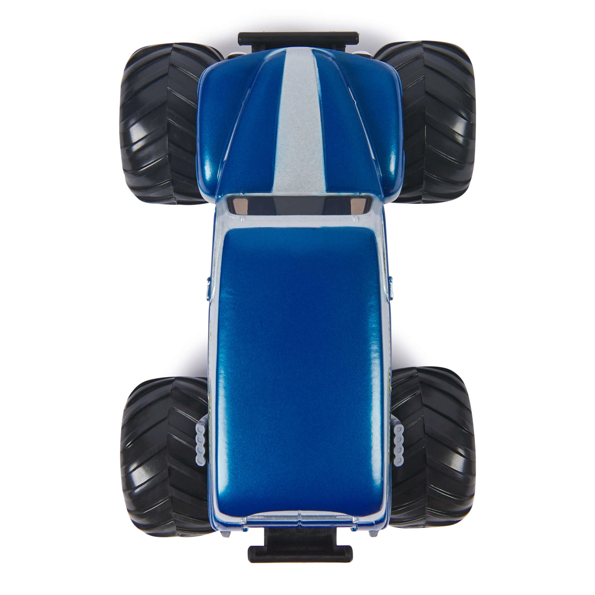 Carrozzeria dettagliata blu‑argento, assetto rialzato e look iconico per un’esperienza Monster Jam estremamente fedele.