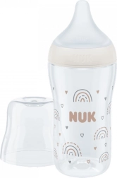 Il biberon NUK Perfect Match Temperature Control è progettato per un'alimentazione tranquilla e la massima sicurezza. L'indicatore di temperatura tra le tacche cambia colore dal blu (adatto) al bianco (troppo caldo), così riconoscerai facilmente la temperatura ideale intorno ai 37 °C. La morbida tettarella in silicone misura M (da 3 mesi, per latte materno) rispetta i naturali movimenti di suzione di lingua e mascelle e l'ampio appoggio per le labbra ricorda la pelle della mamma.