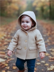 Cappottino autunnale NEW BABY UNI con cappuccio, elegante e confortevole, per bambini e bambine. Offre un taglio universale, un tessuto più caldo adatto anche all’inverno mite e una fodera in cotone di qualità per un comfort piacevole. I bottoni in legno aggiungono un tocco elegante e il cappuccio protegge affidabilmente dal vento freddo.