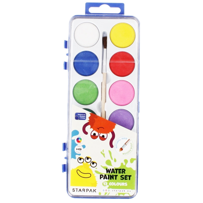 Questo set di acquerelli offre tutto il necessario per dipingere in modo rapido e confortevole: nella confezione trovi 12 colori e un pennello di qualità. Le dimensioni compatte facilitano il trasporto a scuola e in viaggio, rendendo il set una scelta perfetta per bambini creativi e artisti principianti.