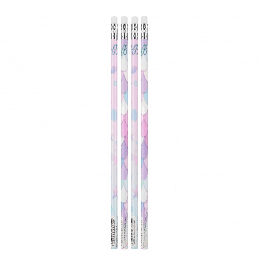 Dolci matite con motivo sirena che faranno felice ogni piccolo artista e scolaro. Nella confezione trovi 4 matite con gomma integrata, comoda lunghezza di 19 cm e durezza HB per scrittura e disegno quotidiani. Accessorio scolastico ideale per bambini dai 3 anni.