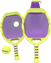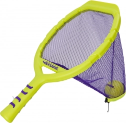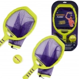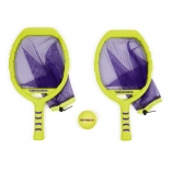Due racchette in giallo neon con rete viola e pallina abbinata creano un set vistoso e ben visibile per momenti attivi in famiglia, duelli tra amici e allenamento di agilità e coordinazione. Divertimento senza pause: la rete aiuta a raccogliere facilmente la pallina da terra per continuare a giocare.