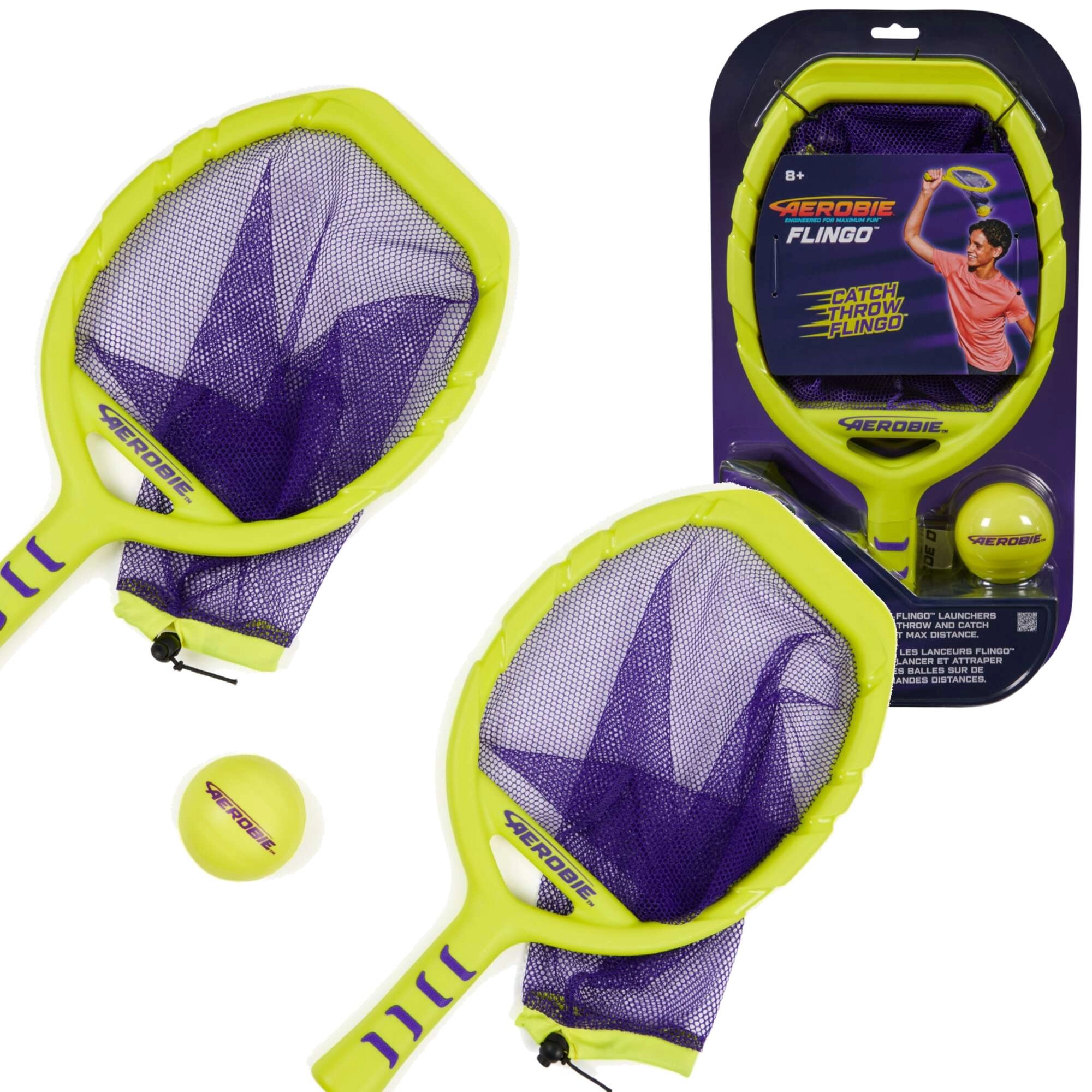 Il set Aerobie Flingo porta il classico divertimento all’aperto a un livello superiore. La rete di grande formato consente di catturare e catapultare la pallina con un unico movimento, garantendo lanci lunghi, ottimo controllo e gestione intuitiva. La struttura leggera con presa confortevole è ideale per partite veloci senza regole complicate.
