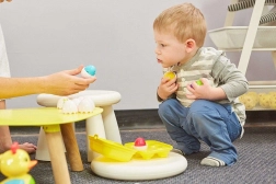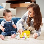 I pulcini colorati nelle uova squittiscono quando vengono premuti. Il bambino sviluppa naturalmente udito, tatto e la comprensione di causa ed effetto.