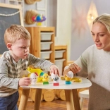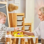 Ogni uovo presenta una forma unica sul guscio inferiore. L’abbinamento alle posizioni corrette rafforza logica, pazienza e motricità fine.