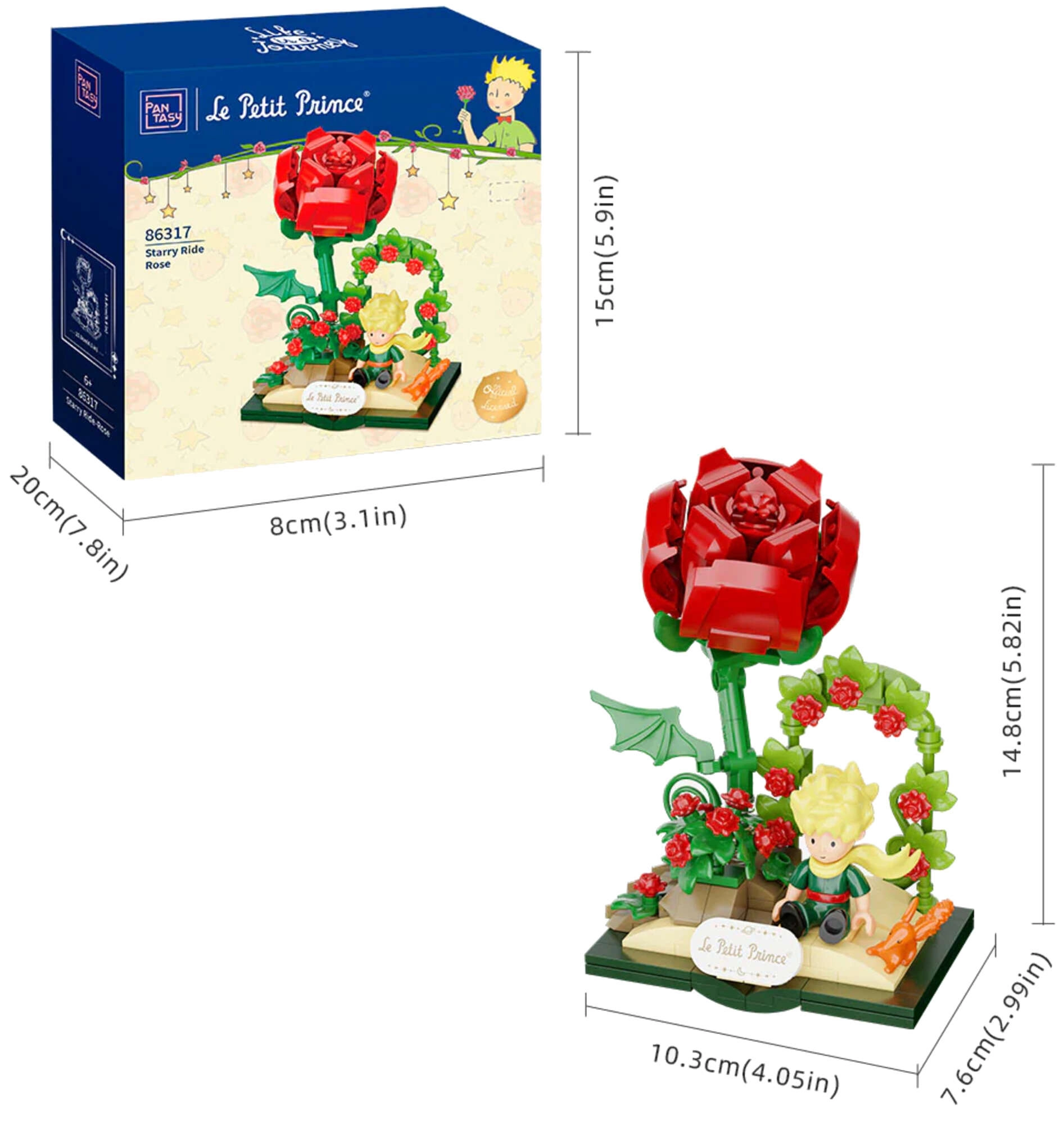 Questo set di design presenta l’iconica rosa rossa e la figura del Piccolo Principe con la volpe in una scenografia poetica. Grazie ai dettagli stampati risaltano colori e motivi delicati e il modello conserva a lungo un look premium. La decorazione assemblata, con dimensioni 14,8 × 10,3 × 7,6 cm, impreziosisce perfettamente scrivania, mensola o cameretta.