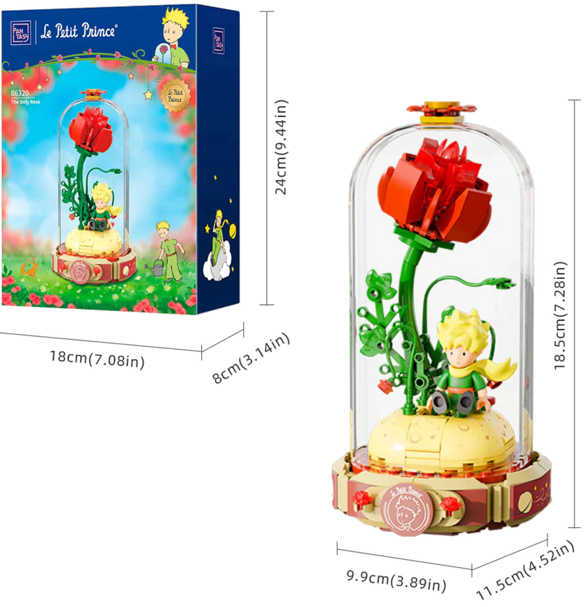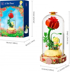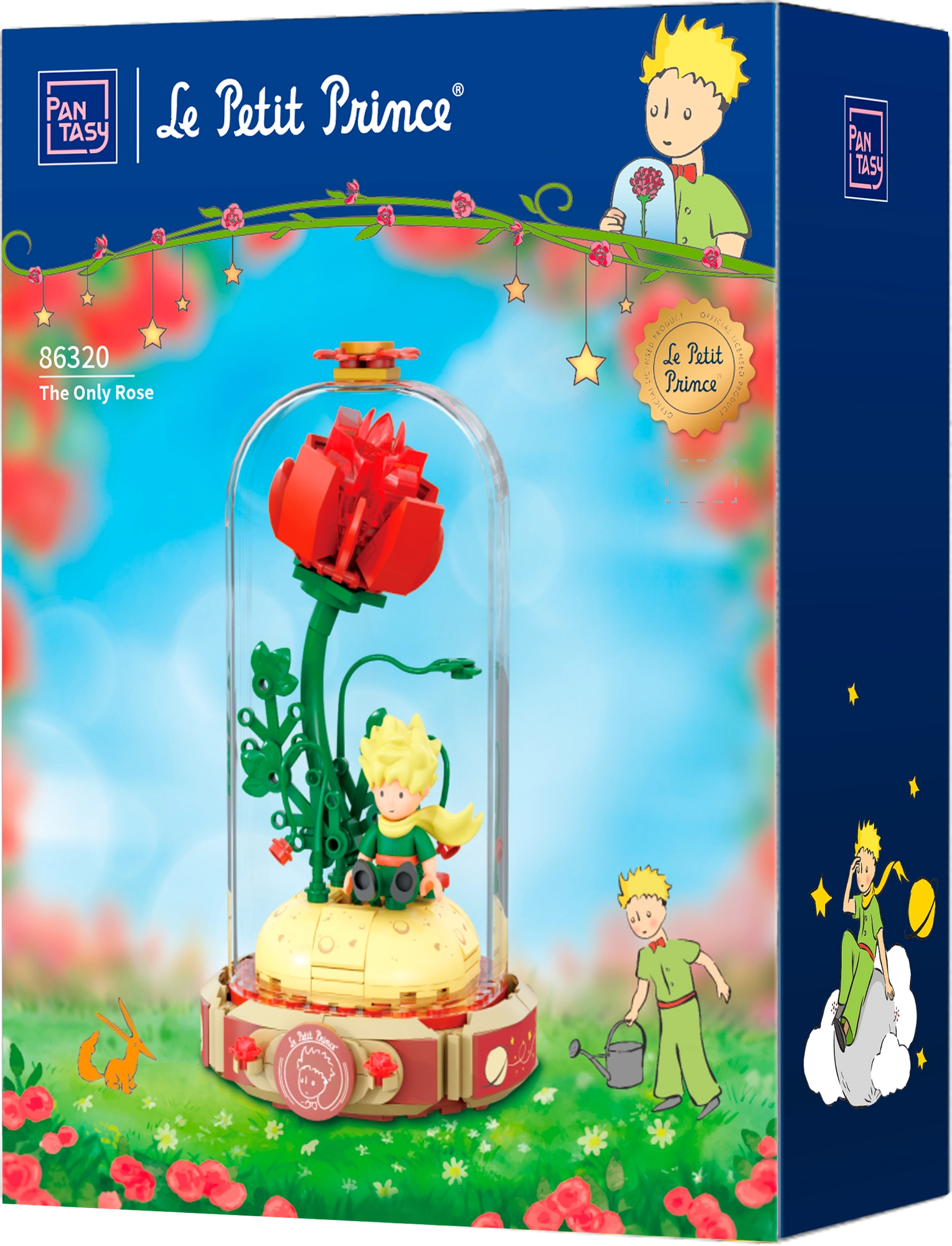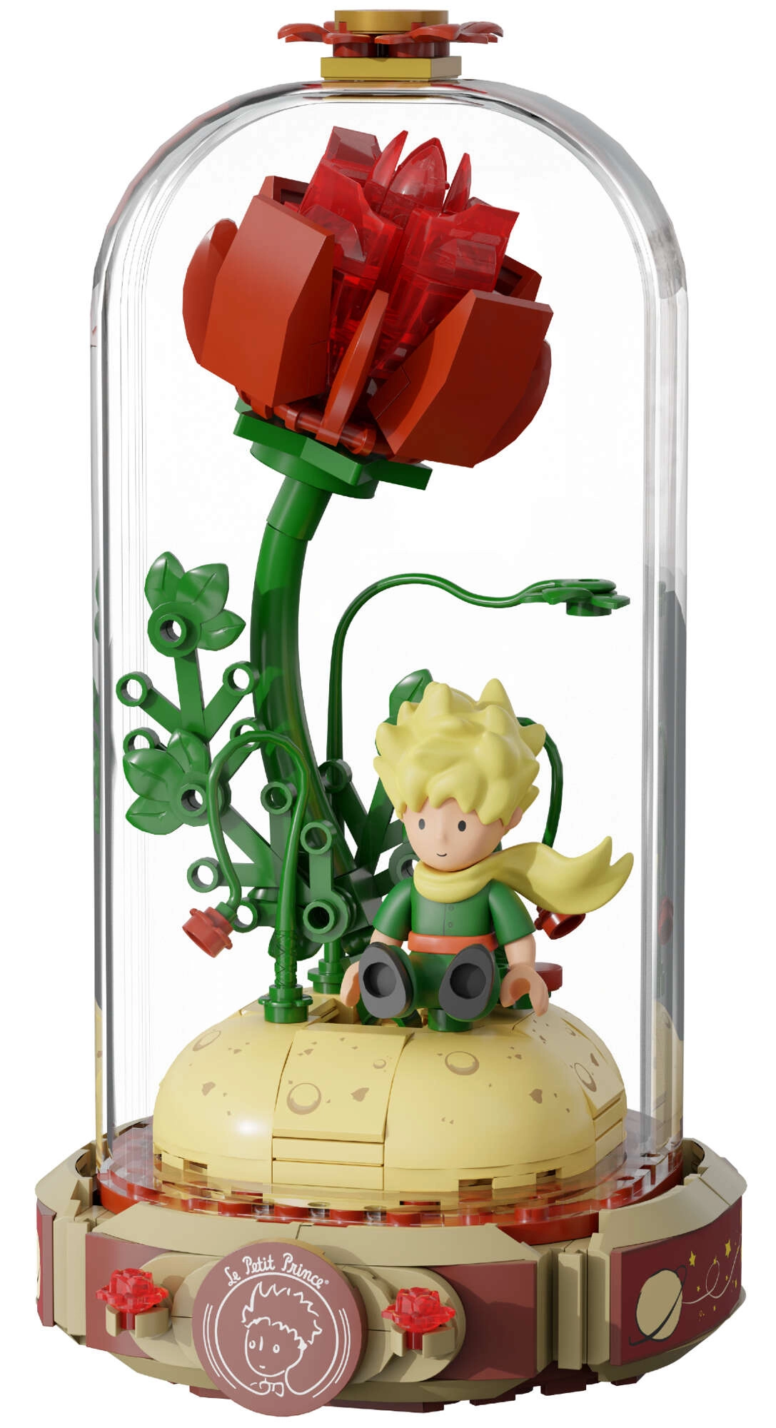 Monta l’emblematica rosa rossa su una base a forma di libro aperto con la scritta “Le Petit Prince”. Accanto si trovano il Piccolo Principe e la volpe nella posa tipica. I curati dettagli di steli, foglie e fiori donano al modello armonia ed eleganza – un pezzo perfetto per l’esposizione e per un divertimento creativo.