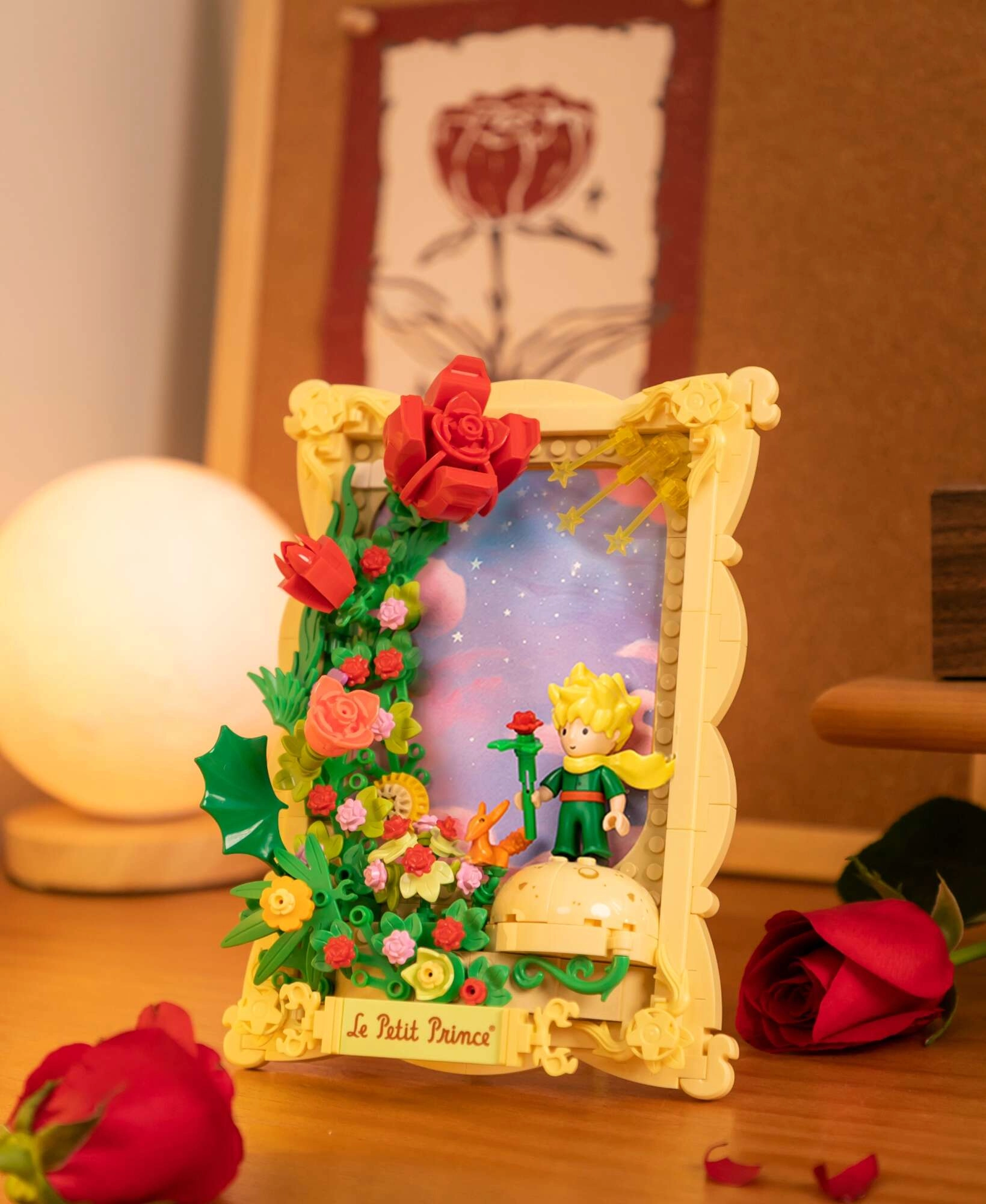 Questo set di design trasforma la poesia dell'intramontabile racconto in una decorazione originale. Assemblerai una rosa rossa di grande impatto con petali finemente modellati, una cornice elegante e una base con la scritta Le Petit Prince. Grazie alla plastica ABS di qualità e agli incastri precisi, la costruzione è fluida e il risultato stabile – ideale per una mensola, la scrivania o la cameretta.