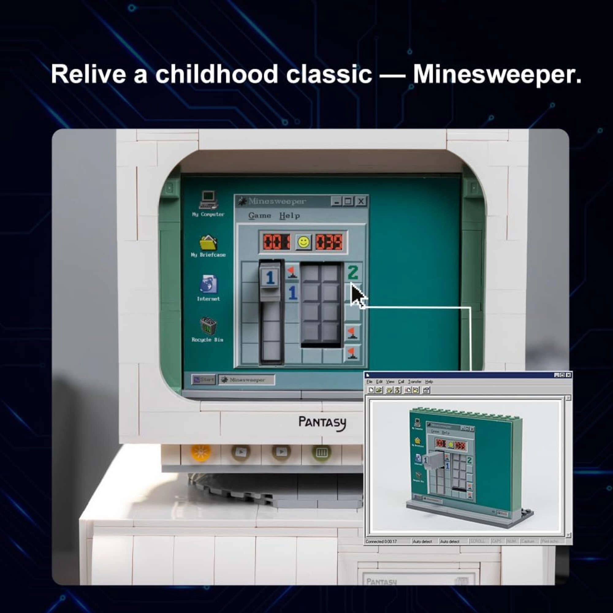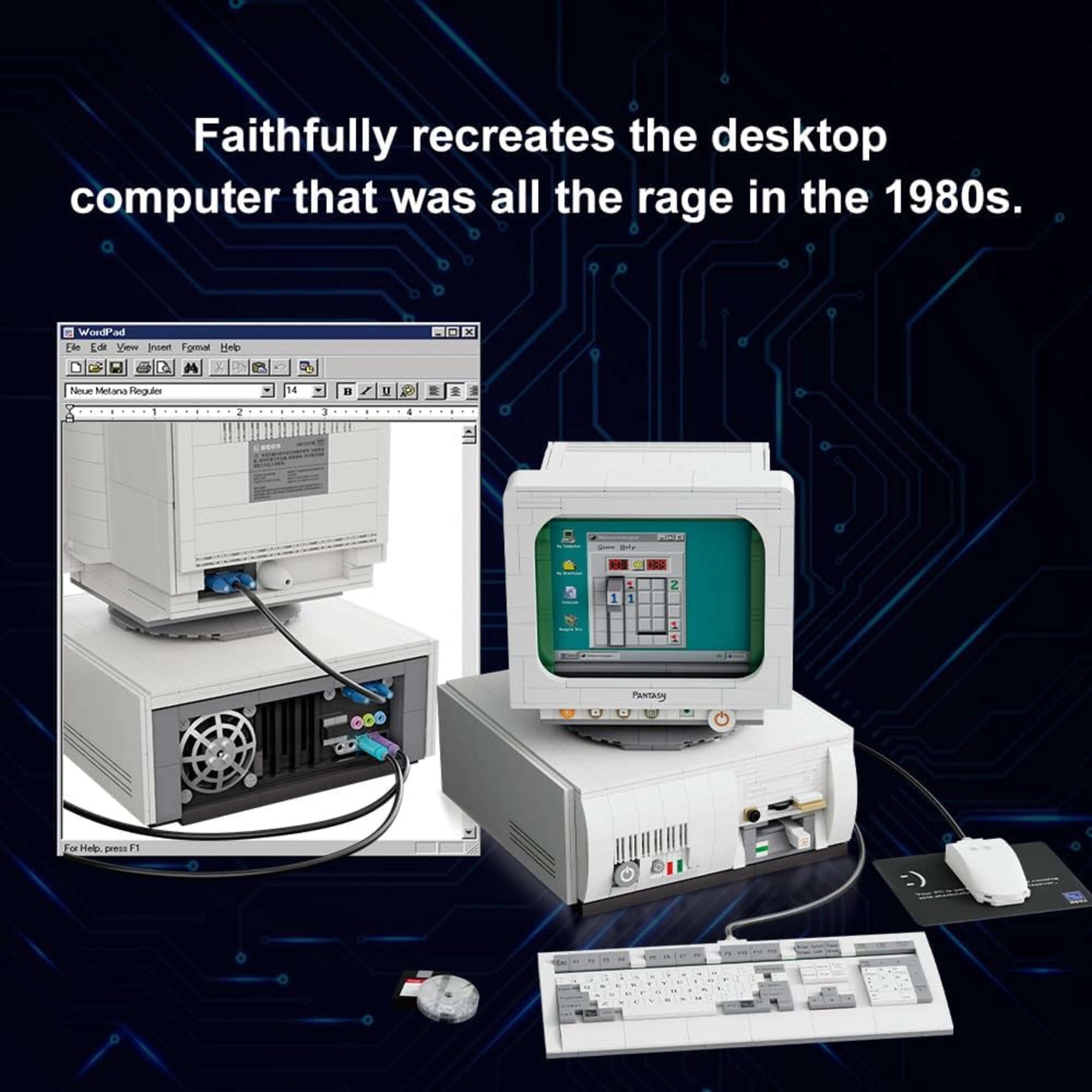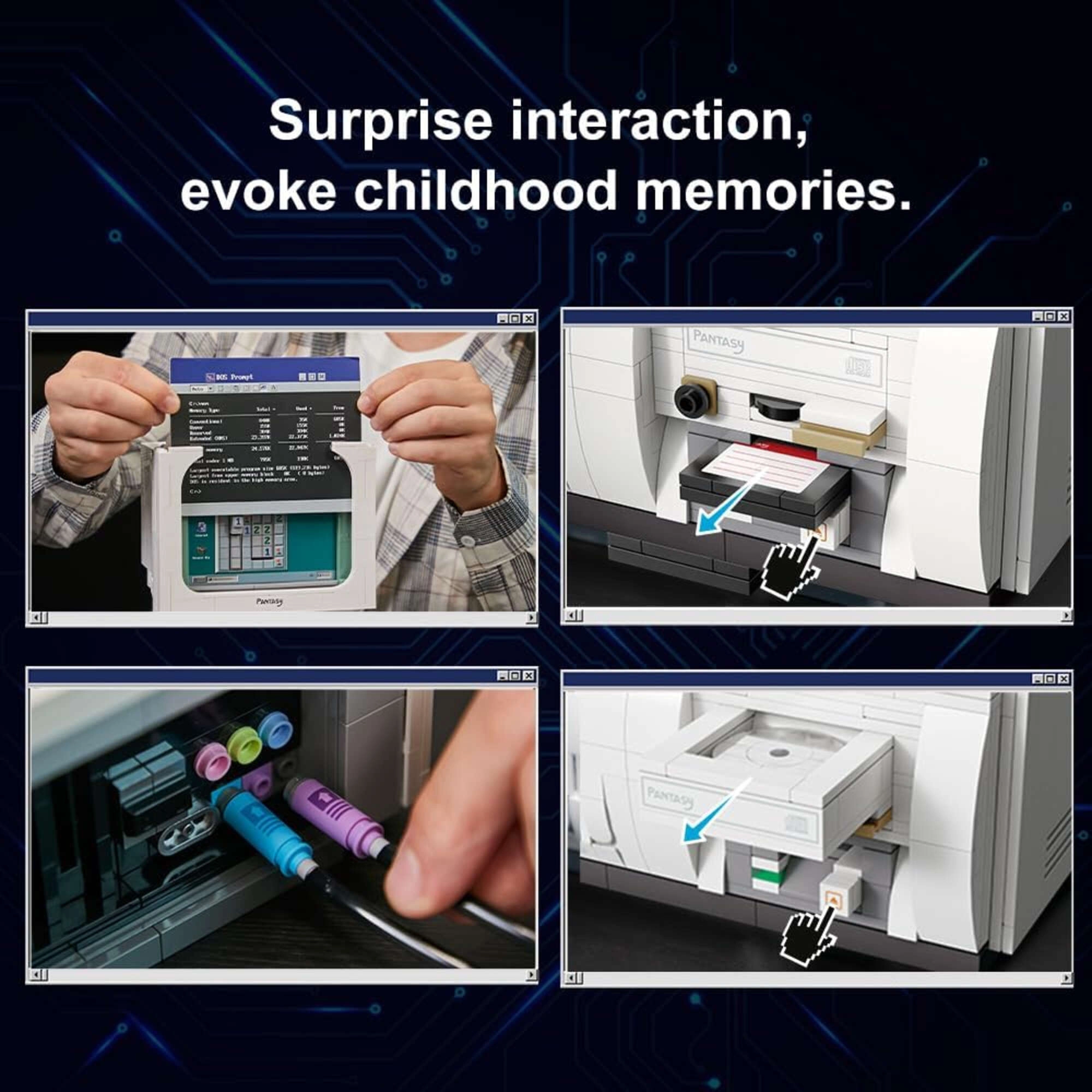 L’iconico computer retrò del set PANTASY cattura fedelmente l’atmosfera degli anni ’80. Ogni pezzo è realizzato con precisione per un incastro perfetto e resistenza. Una volta assemblato, funge da decorazione di stile per casa o ufficio e da suggestivo pezzo da collezione.