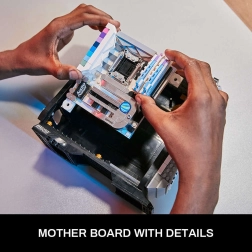 Scopri un set di costruzione originale che riproduce fedelmente un moderno desktop da gaming. Ogni modulo — dalla scheda grafica all’alimentatore e al supporto per SSD fino alla scheda madre e alle memorie DDR — si assembla separatamente, così potrai goderti la sensazione realistica di un “upgrade” del computer. La precisa stampa tampografica sui pezzi assicura un aspetto bello e duraturo senza bisogno di etichette adesive.