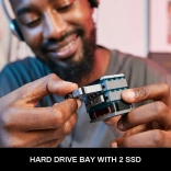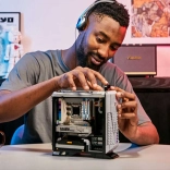 Assembla la scheda grafica, l’alimentatore, il supporto SSD, la scheda madre e i moduli di memoria: la costruzione modulare amplifica la sensazione del vero “building”.