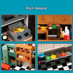 Scopri il fascino delle strade piene di profumi e luci con il modello accurato del food truck retrò. Il tetto si solleva facilmente rivelando una cucina autentica con piastra, friggitrice, forno e utensili. Grazie ai dettagli stampati, l’aspetto rimane pulito e a lungo impressionante.