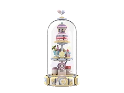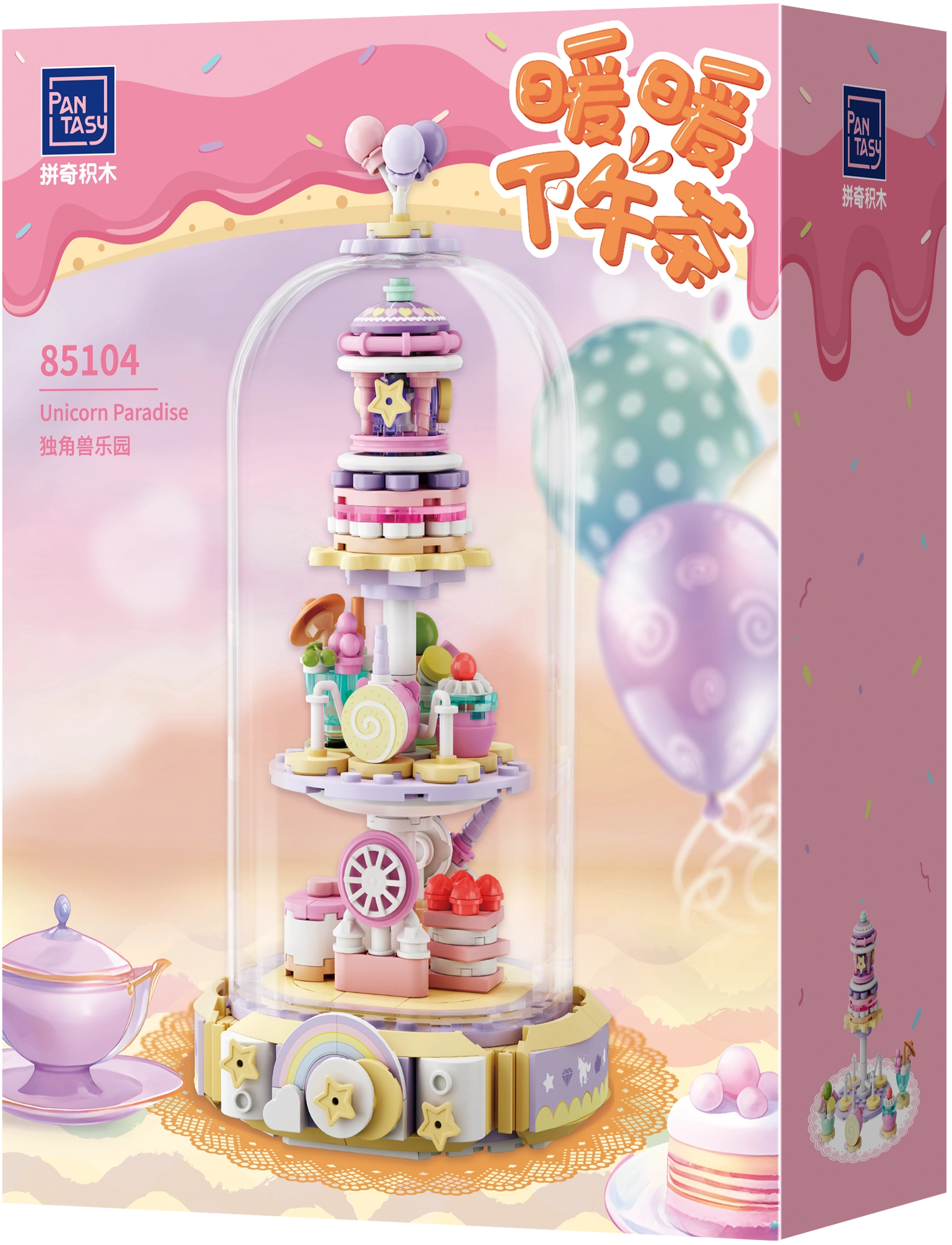 Entra in un’atmosfera fiabesca con una “pasticceria” su tre livelli piena di unicorni, stelline e cuoricini. La cupola trasparente dona al modello un carattere espositivo elegante e protegge i piccoli dettagli. Le delicate tonalità di rosa, azzurro e viola creano una decorazione incantevole per la cameretta dei bambini e la mensola del collezionista.