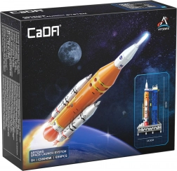 Il modello CaDA ispirato al programma NASA Artemis riproduce fedelmente lo stadio centrale arancione, i booster ausiliari bianchi e la torre di servizio con dettagli strutturali. Non mancano motori realistici, simulazione dell’accensione e marcature NASA, che lo fanno risaltare su qualsiasi mensola.