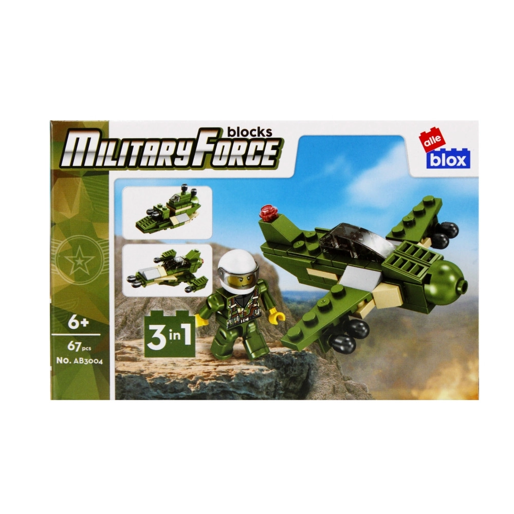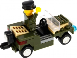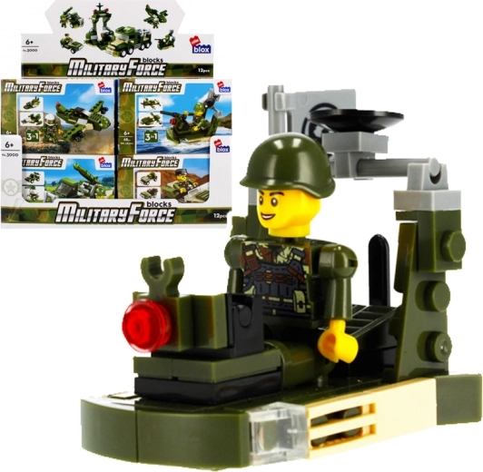 Scopri divertenti set di costruzioni militari con minifigure per bambini dai 6 anni. Ogni set offre 63–64 pezzi, un manuale di montaggio e la possibilità di scegliere tra quattro varianti (jeep, barca/raft, velivolo, ecc.). Le dimensioni compatte 9 × 6 × 10 cm garantiscono un montaggio rapido ma con spazio sufficiente per gioco creativo ed esposizione.