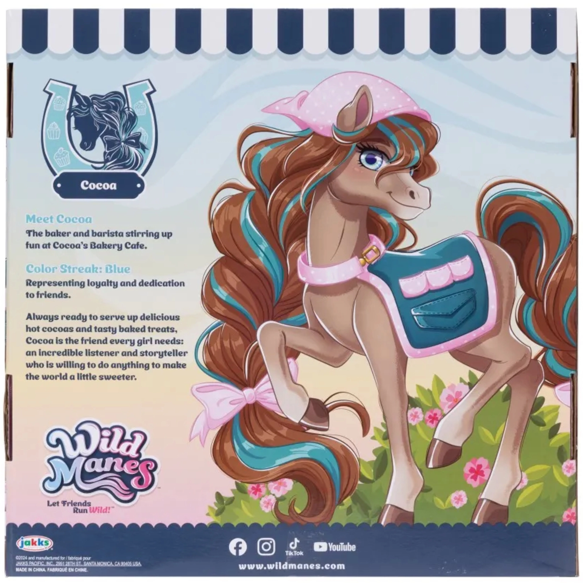 Il cavallino Cocoa della popolare serie WILD MANES arriva con un dettagliato carretto Bakery Café, dove può servire bevande e dolcetti. La figura ha una criniera curata nei dettagli con treccine, occhi espressivi e indossa un grembiule alla moda – pronta per ogni avventura. Grazie alle clip a forma di ferro di cavallo, Cocoa può tenere gli accessori e interpretare facilmente varie scenette.