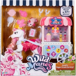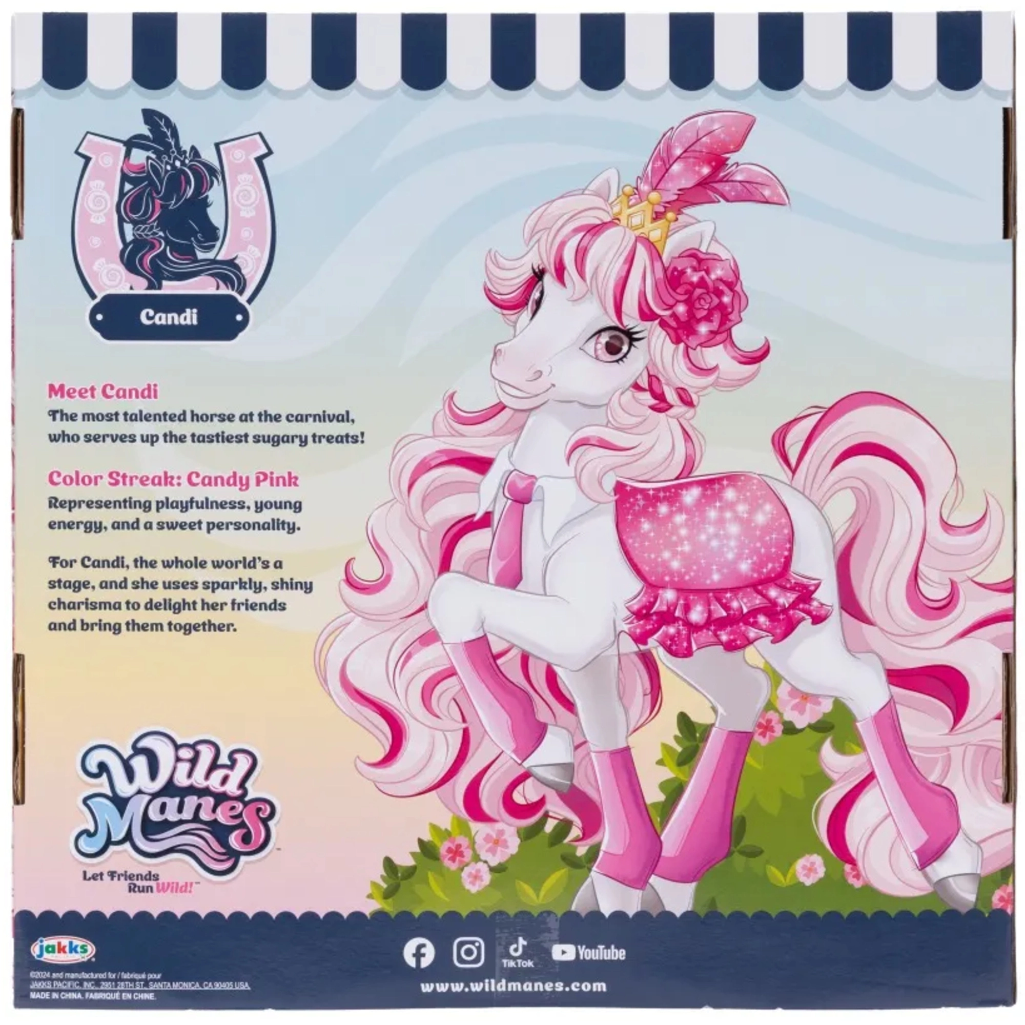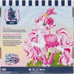 L’unicorno Candi conquista con il corpo bianco, la criniera e la coda rosa, una corona scintillante e un outfit alla moda. Grazie agli arti snodati la mini bambola può essere facilmente posizionata in varie pose e permette di rivivere le scene preferite dal mondo di WILD MANES.