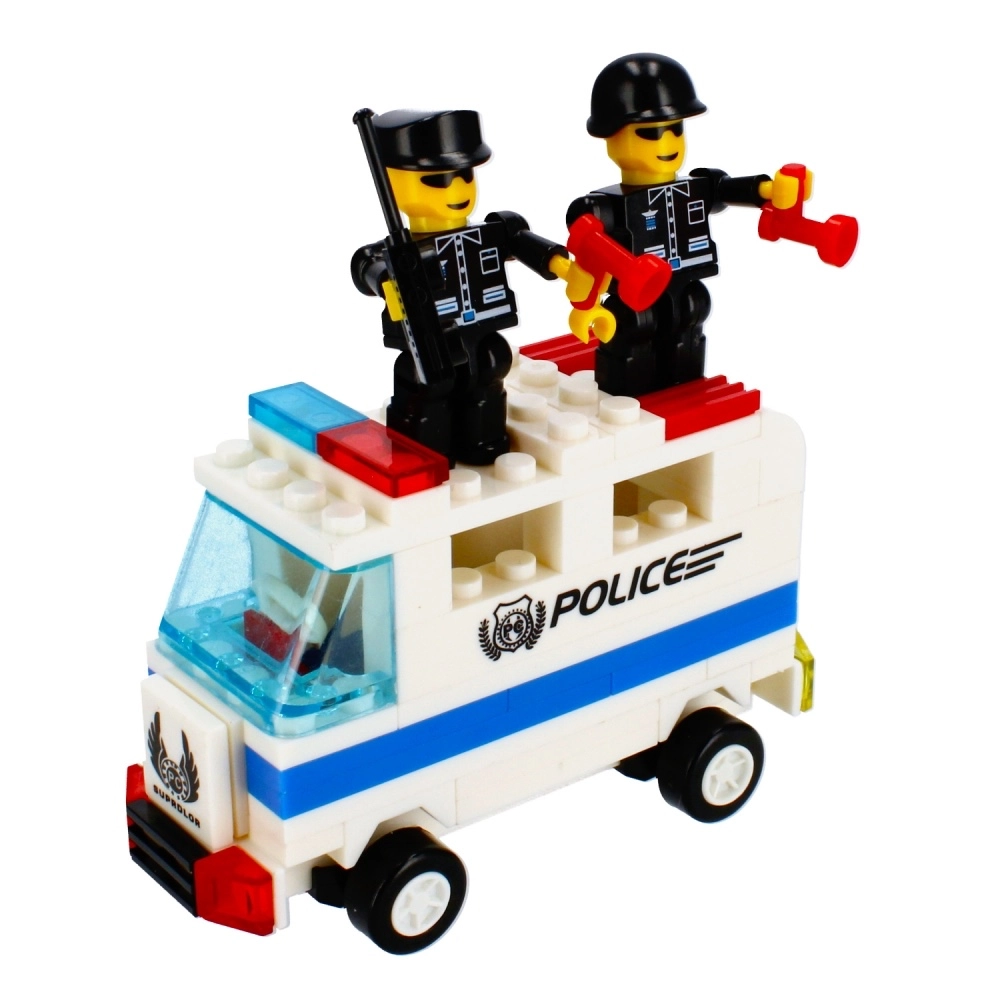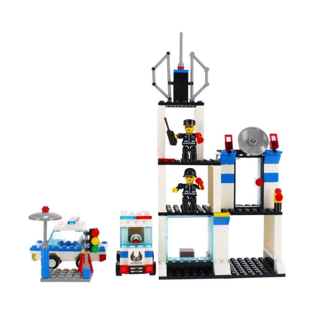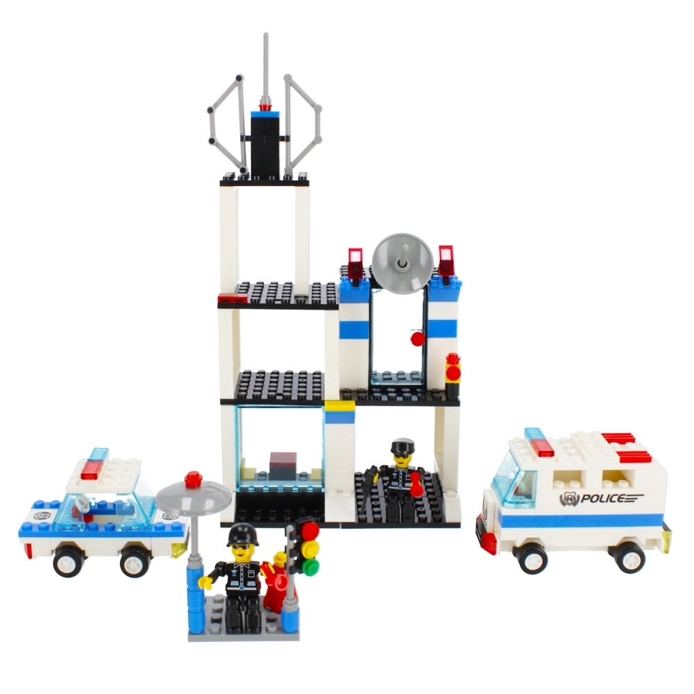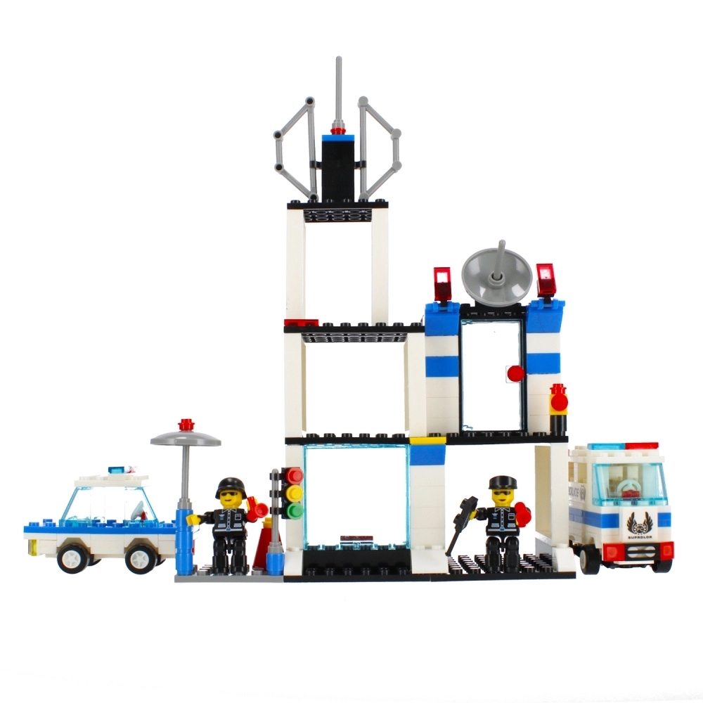 - Set costruzioni stazione di polizia, 2 veicoli, minifigure, accessori, manuale di montaggio