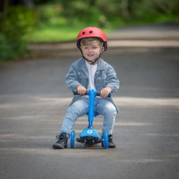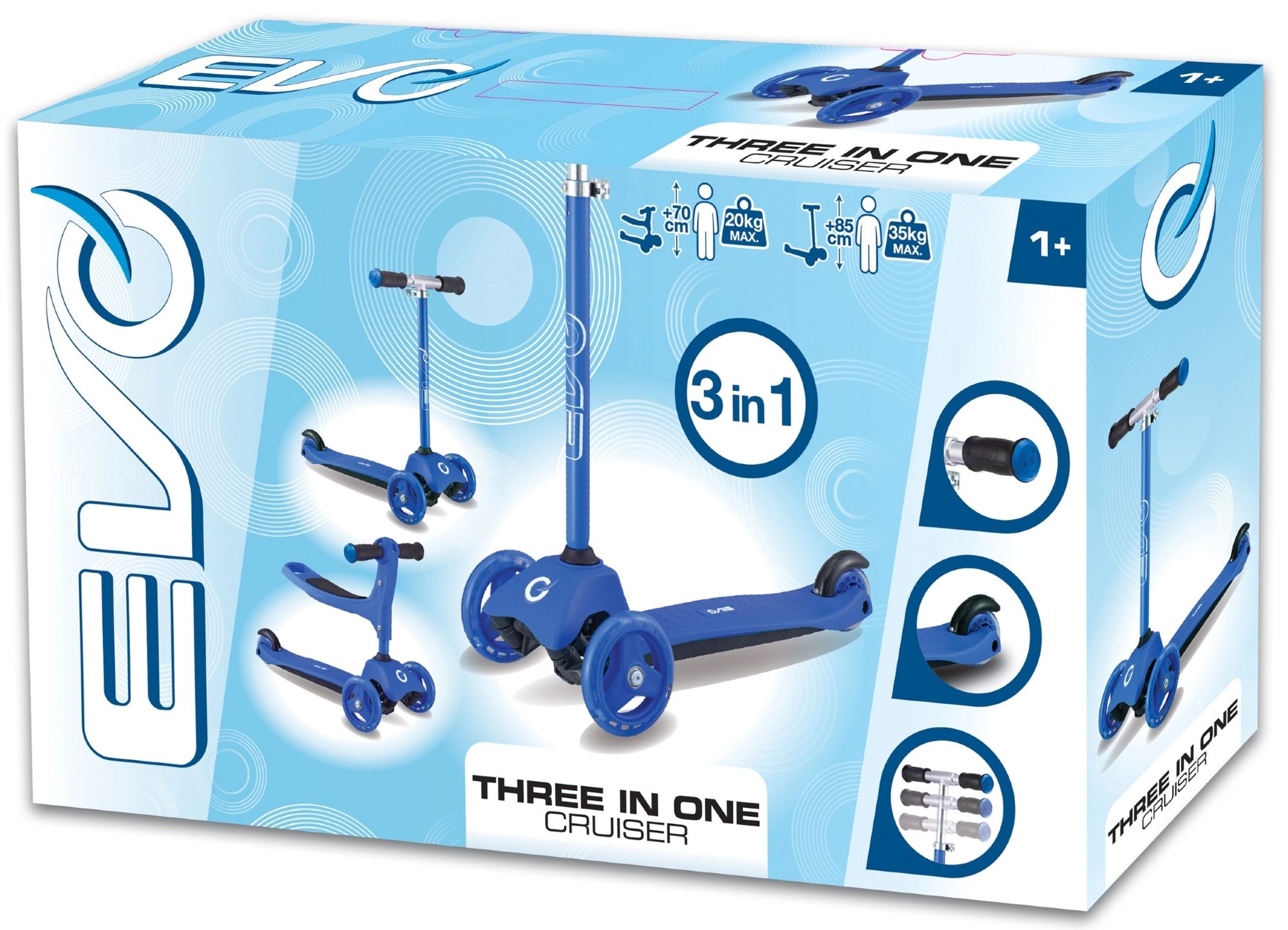 Il monopattino EVO 2in1 cresce con il bambino: inizia in modalità cavalcabile con sedile per una partenza sicura e passa poi al classico monopattino triciclo. Le due grandi ruote anteriori garantiscono ottima stabilità, lo sterzo lean-to-steer favorisce l’apprendimento naturale dell’equilibrio e la pedana antiscivolo offre sicurezza a ogni metro.
