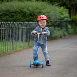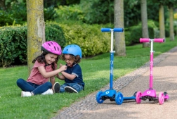 Due grandi ruote anteriori aiutano a mantenere direzione ed equilibrio, la pedana bassa con superficie antiscivolo dà sicurezza ai piccoli rider.