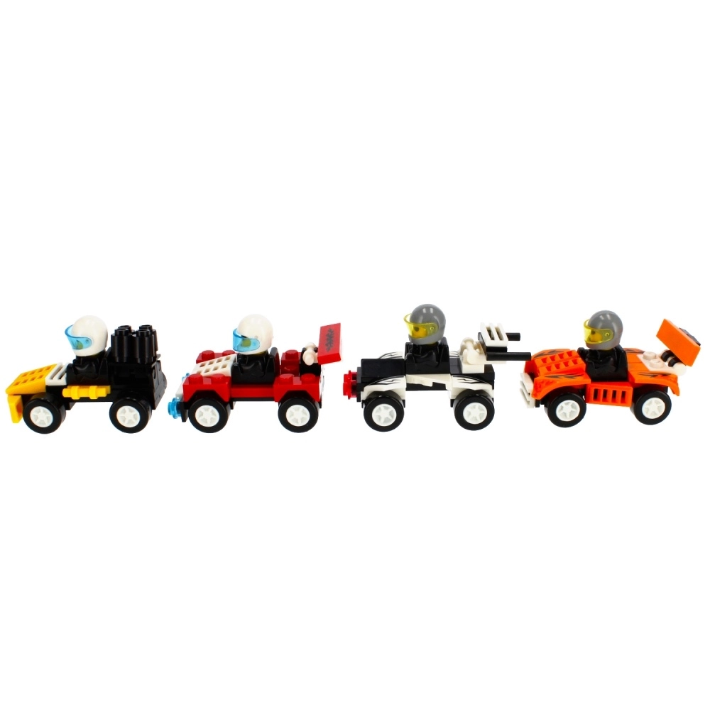 Puoi scegliere tra 4 design accattivanti (colori e dettagli differenti), perfetti sia in esposizione che sulla pista di casa. Le macchinine sono compatibili con i set da costruzione comuni dello stesso tipo, così potrai ampliare facilmente l’equipaggiamento o creare la tua squadra.