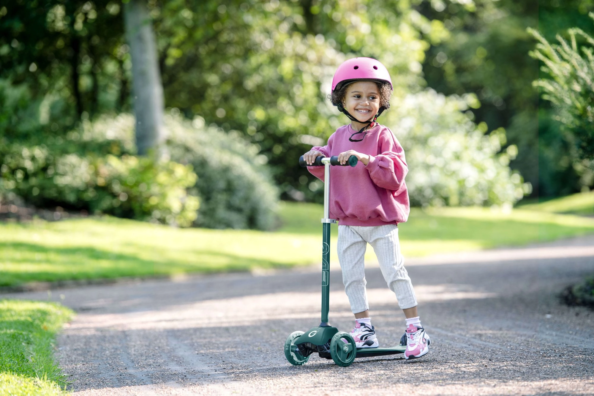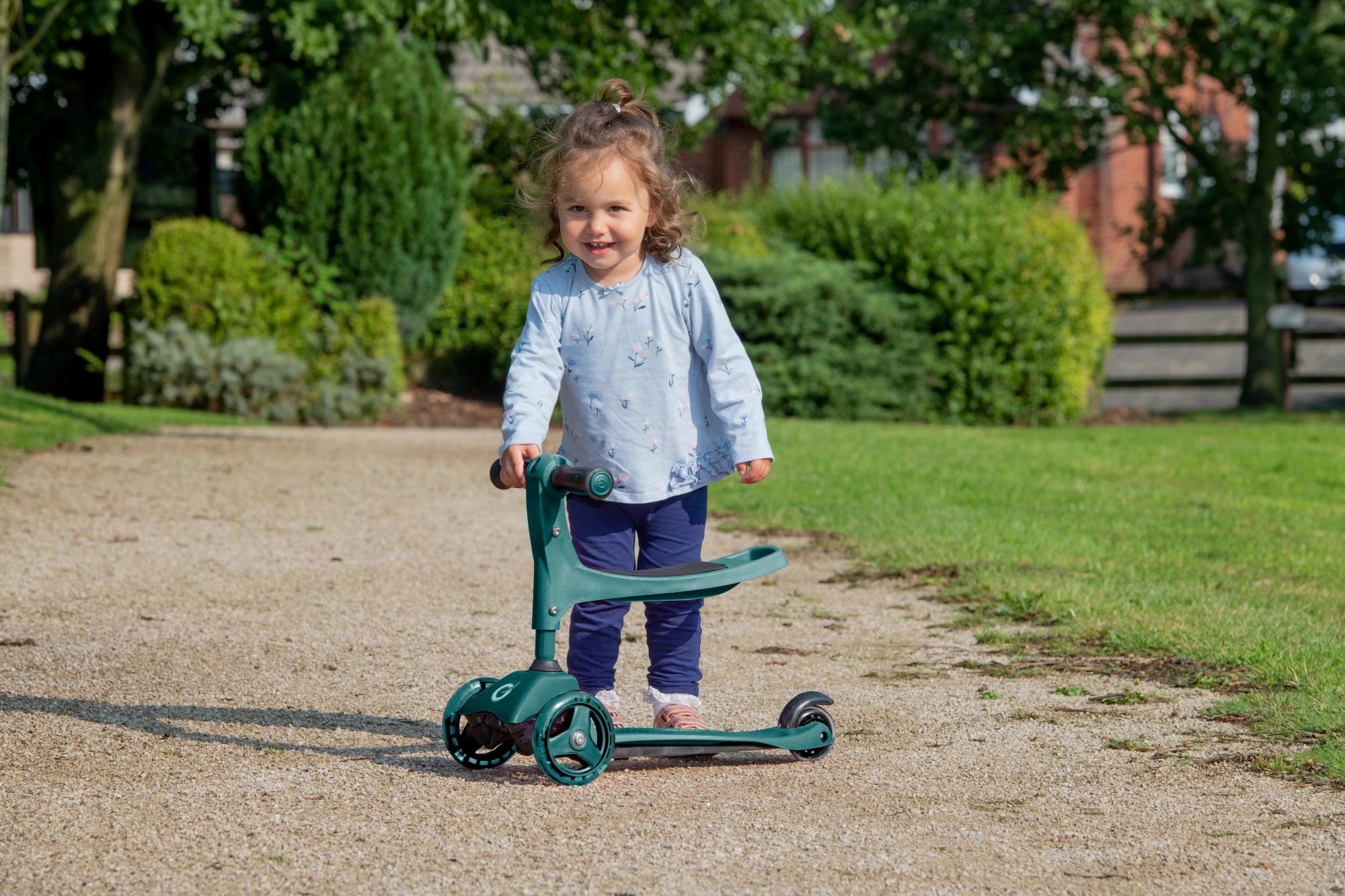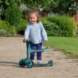 Questo intelligente monopattino/triciclo 2 in 1 si trasforma in pochi istanti da cavalcabile con sedile a monopattino classico. Grazie al manubrio regolabile (circa 40 cm in modalità cavalcabile e 62–72 cm in modalità monopattino) cresce con il bambino e offre sicurezza sia alle prime uscite sia in seguito durante spinte più vivaci.