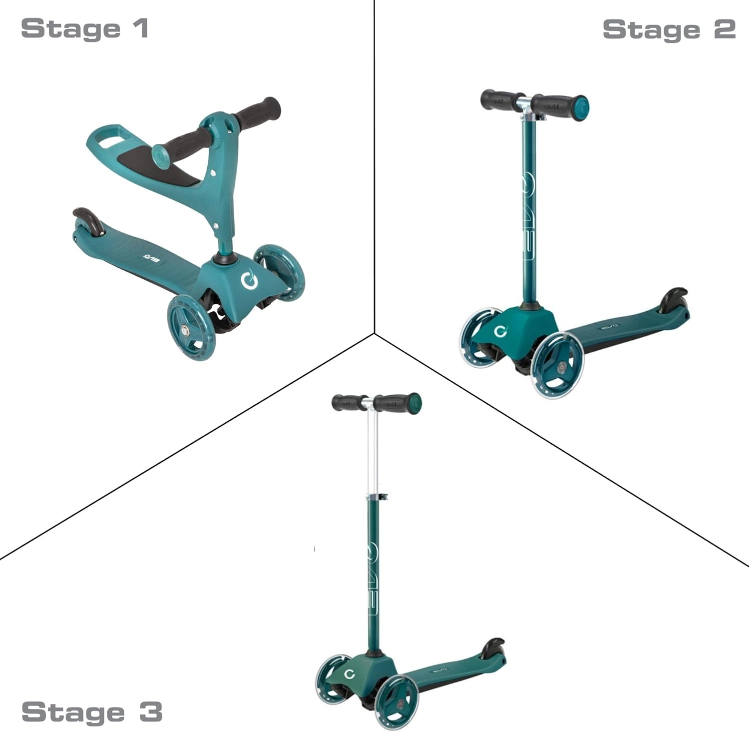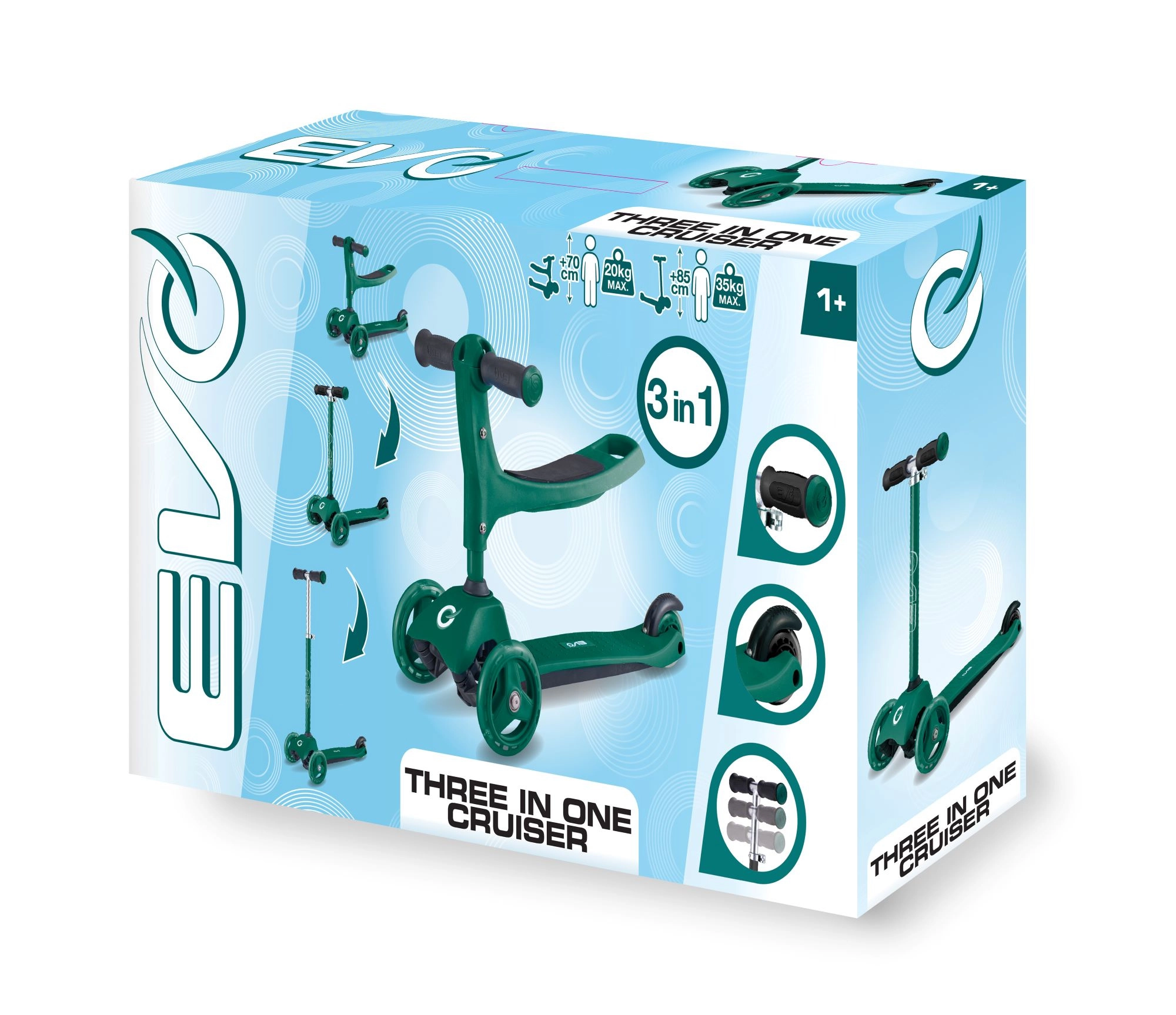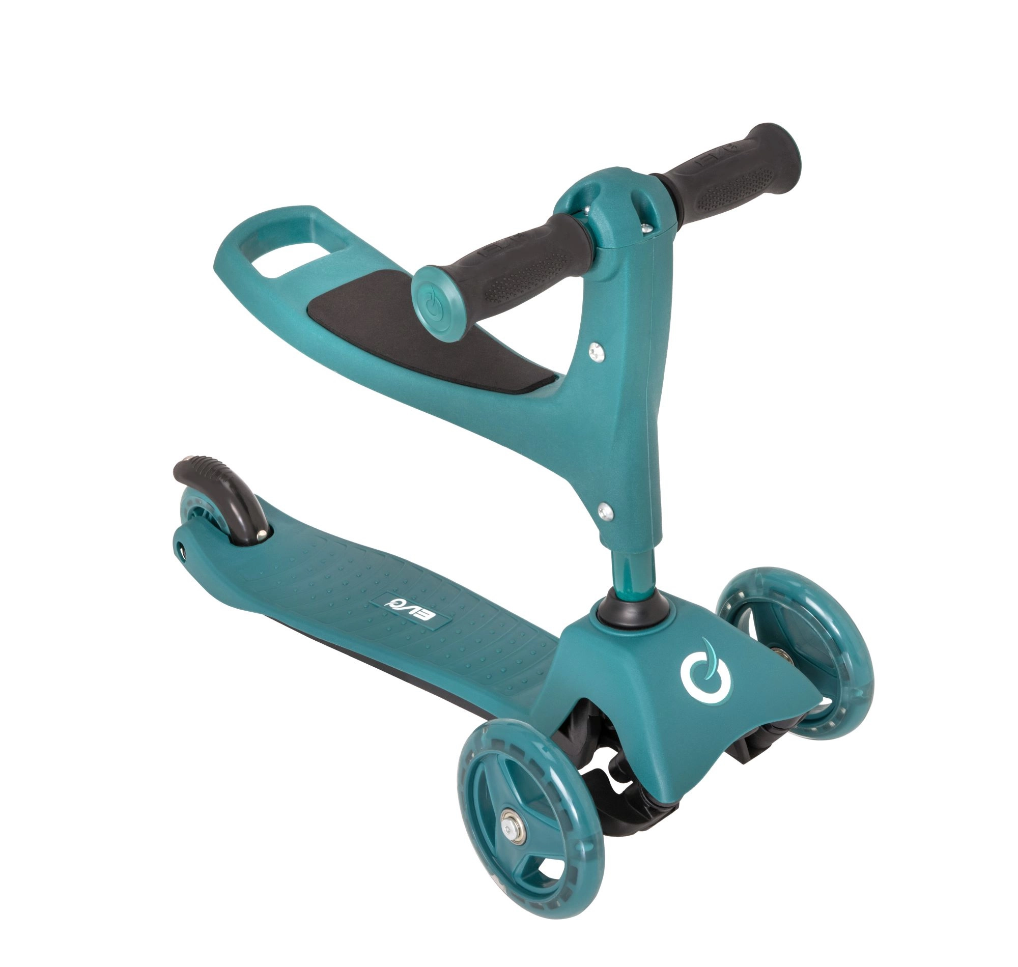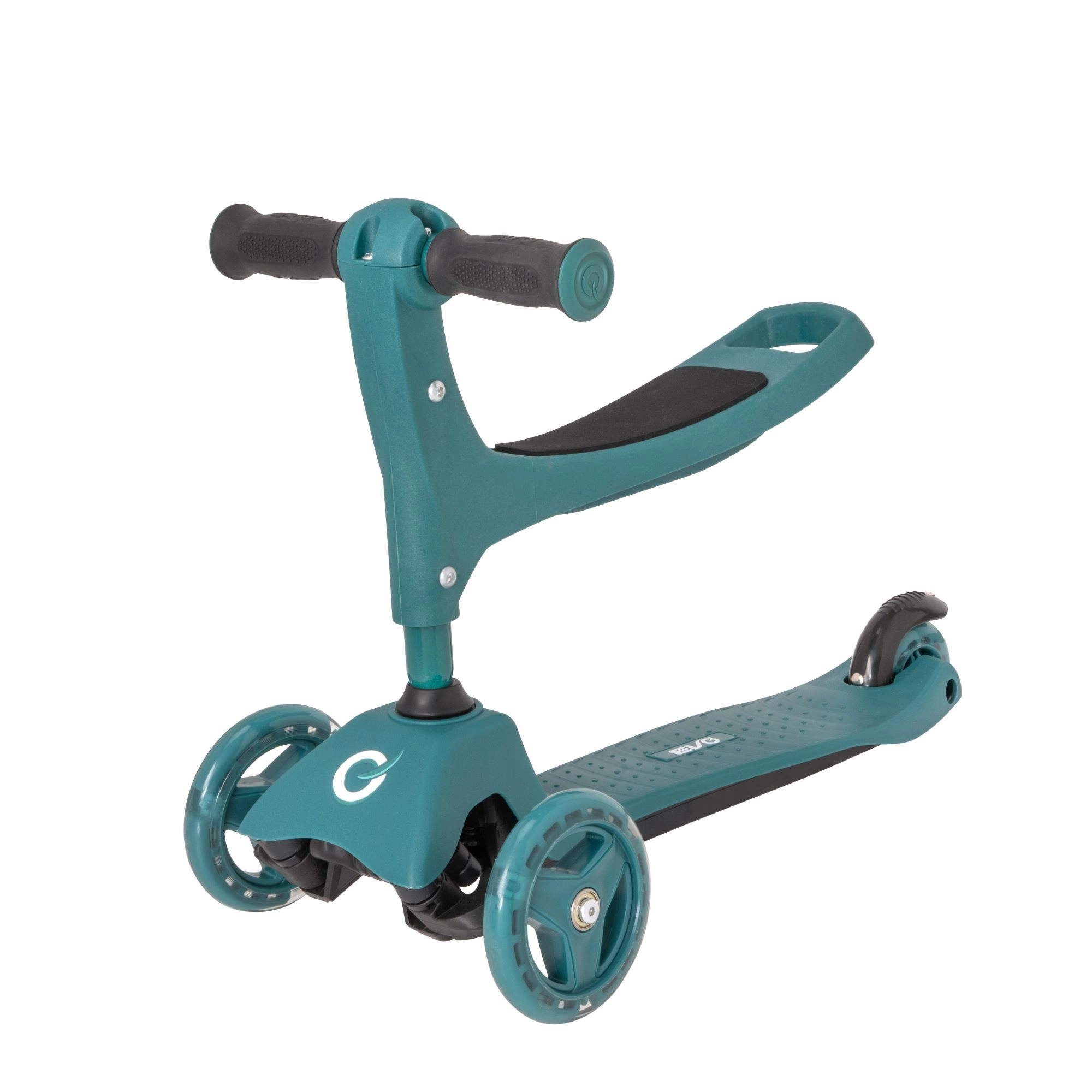 Offri ai bambini una guida stabile e divertente con il monopattino 2 in 1 di EVO: unisce cavalcabile e monopattino in un unico prodotto. Grazie alle tre ruote, alla pedana larga e all'altezza del manubrio regolabile favorisce equilibrio e coordinazione già da 1 anno. Le ruote anteriori doppie, i cuscinetti silenziosi ABEC-5 e il freno a pedale sul parafango posteriore assicurano una guida sicura e fluida.