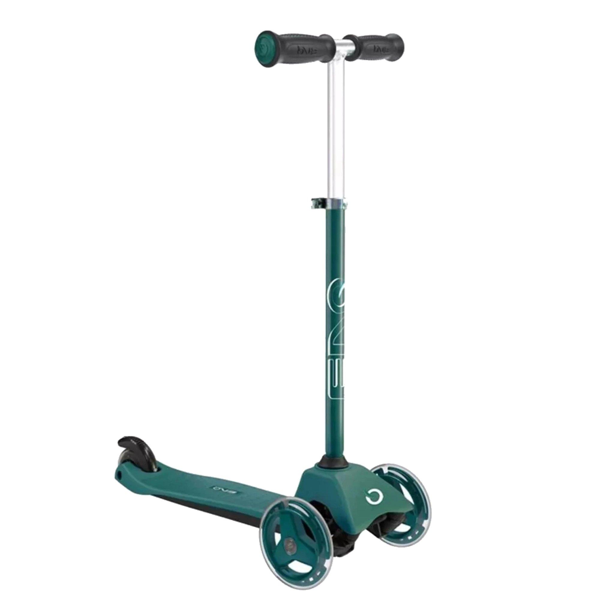 Stabilità e sicurezza sono garantite da due grandi ruote anteriori e da una ruota posteriore più piccola con freno a pedale. La marcia silenziosa e scorrevole è favorita dai cuscinetti ABEC-5, mentre le manopole in TPE offrono una presa salda senza scivolare. Il peso ridotto di 2,75 kg facilita il trasporto e l’uso quotidiano.