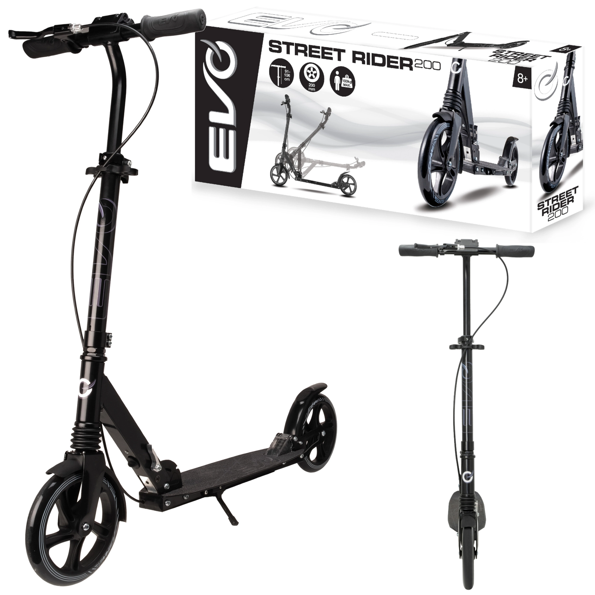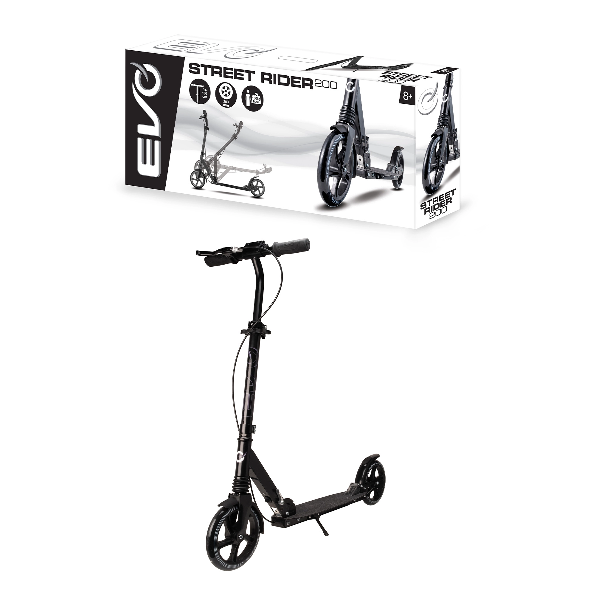 Il monopattino EVO Street Rider 200 è la scelta ideale per la mobilità urbana e le uscite nel tempo libero. Grazie alle grandi ruote da 200 mm con cuscinetti ABEC-7 parte agile e scorre fluido; le sospensioni attenuano le asperità e la struttura pieghevole garantisce trasporto e stoccaggio facili. L’altezza regolabile del manubrio si adatta alla statura del rider, così il monopattino cresce insieme a bambini e teen.