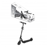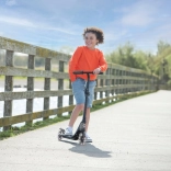 Il pratico manubrio pieghevole e regolabile in altezza (75–80 cm) si adatta facilmente alla statura del bambino. Il freno a pedale integrato nel parafango posteriore offre sicurezza in frenata, mentre le ruote in gomma con cuscinetti ABEC-5 garantiscono una guida silenziosa e fluida su superfici piane.