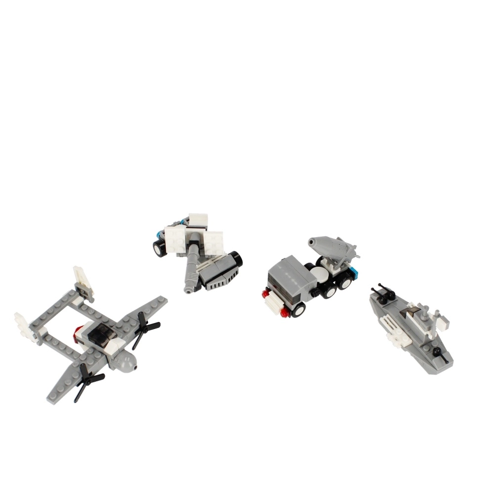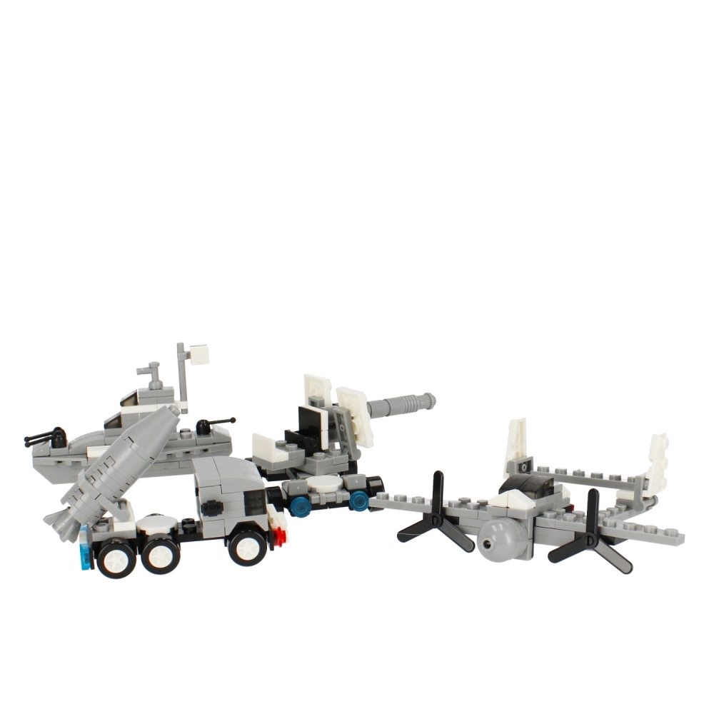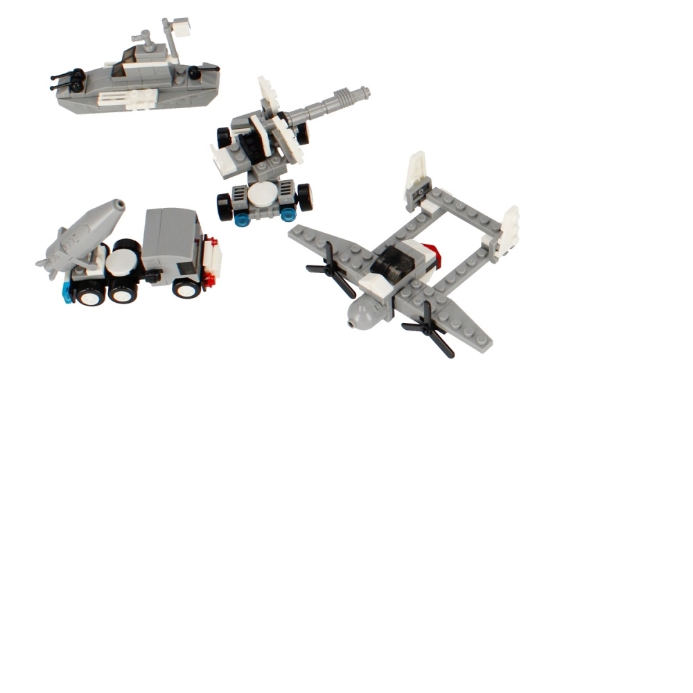Ogni set permette di assemblare fino a 3 diversi mezzi militari – ad esempio aereo, nave, veicolo d’artiglieria o trattore lanciarazzi. Ideale per un gioco variabile e costruzioni ripetute.