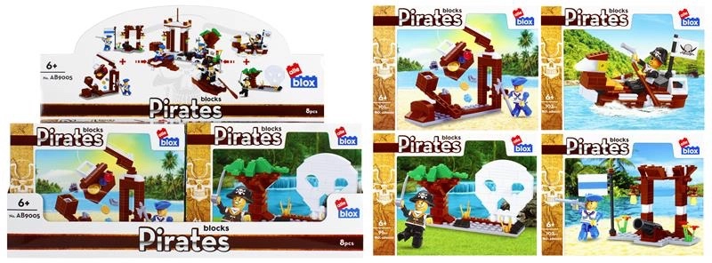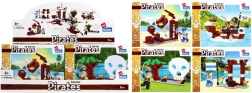 Disponibili 4 varianti diverse – dalla barchetta pirata al piccolo molo e al posto di guardia. I pezzi sono compatibili con la maggior parte dei set simili, per espandere il mondo dei pirati e combinarlo con altri set. La confezione compatta di 19 × 14 × 5 cm è perfetta per i viaggi e come regalo.