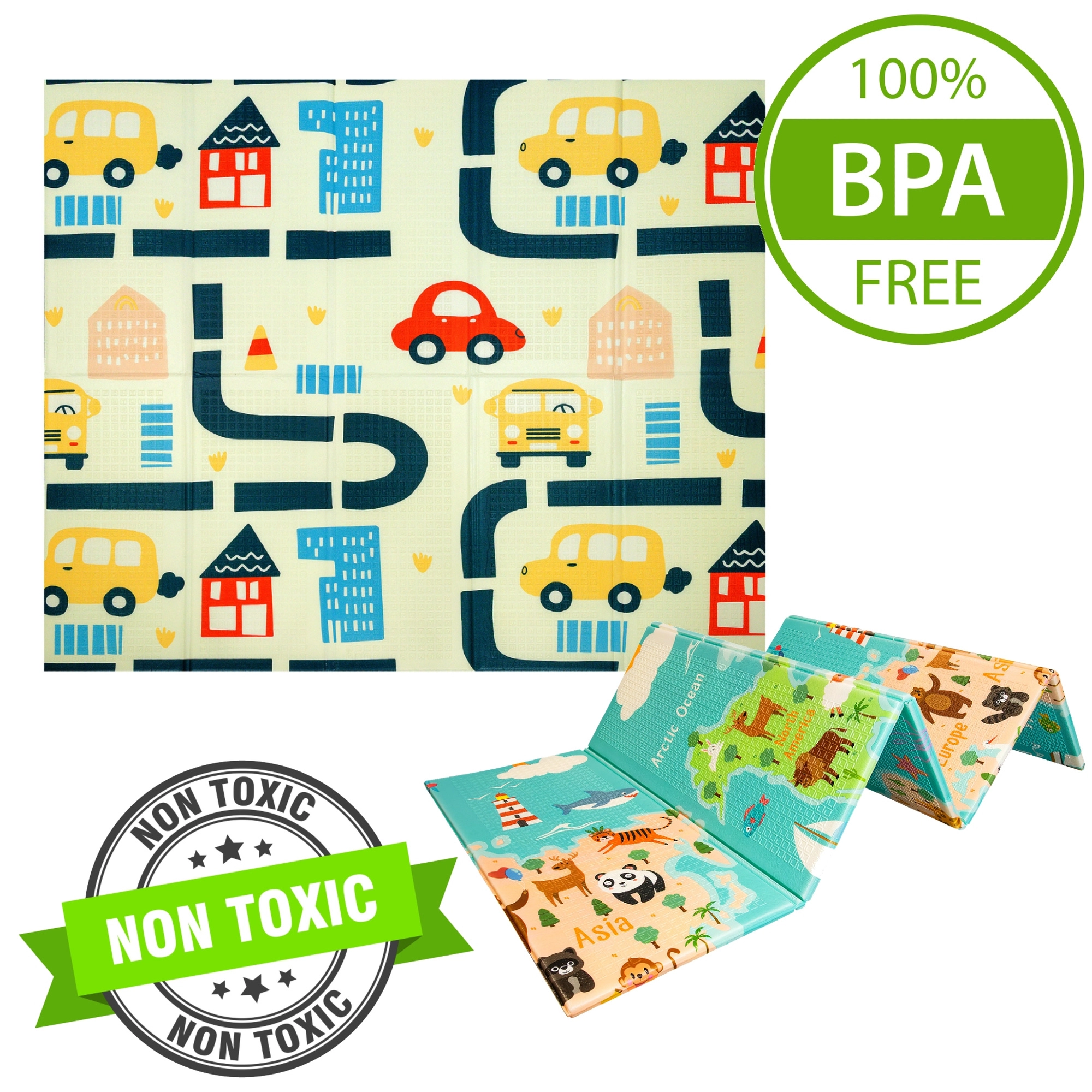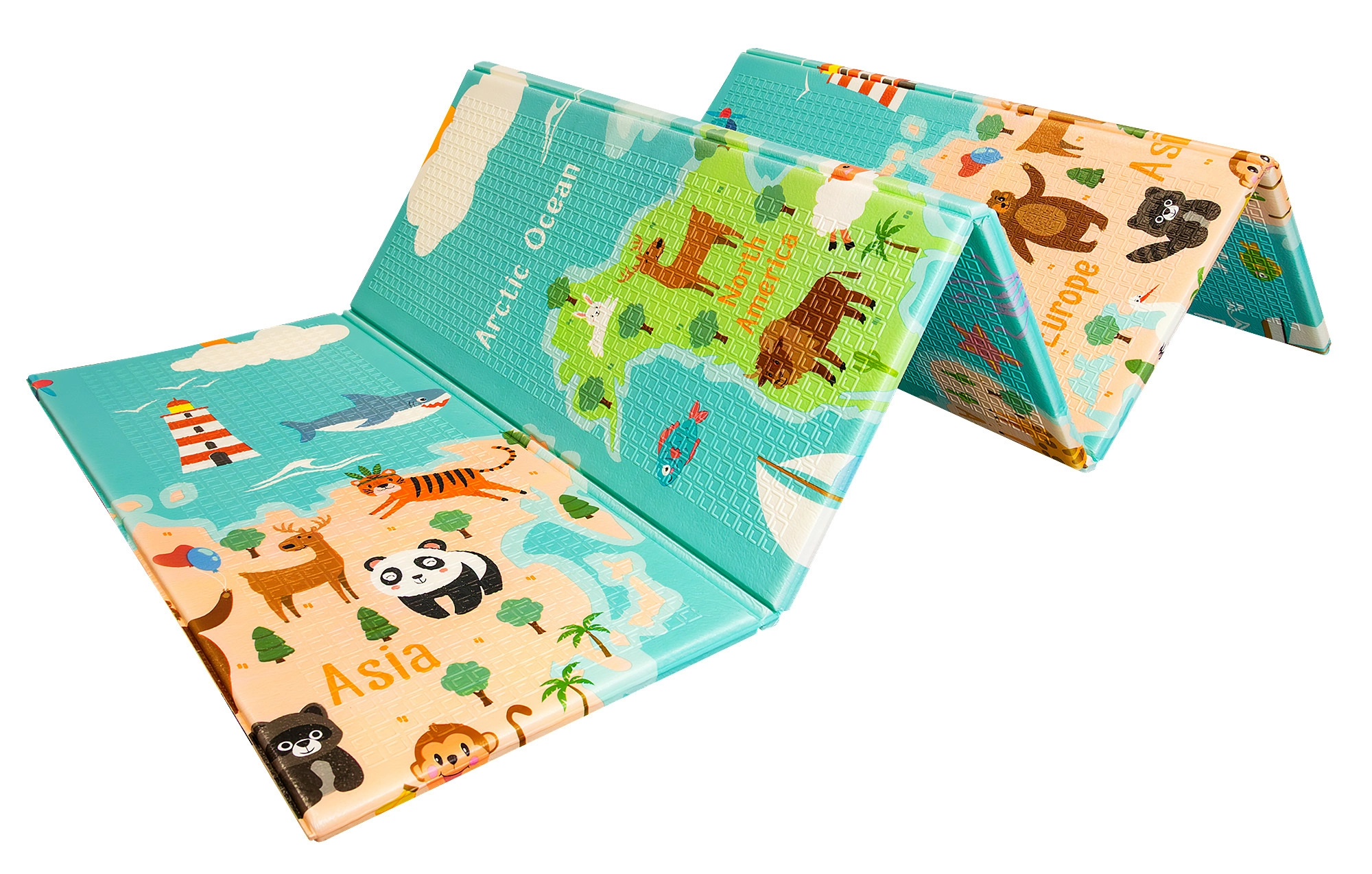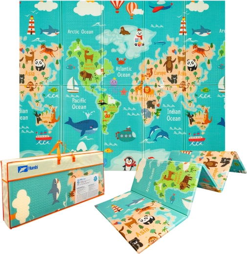 Scopri il tappetino da gioco HUMBI spazioso e morbido in schiuma XPE di alta qualità, dimensioni 200 × 180 × 1 cm. È bifacciale: un lato con la colorata mappa del mondo, l’altro con stradine cittadine, e offre una superficie sicura, impermeabile e facile da pulire per neonati e bambini fin dalla nascita. Grazie alla struttura pieghevole e alla pratica borsa inclusa è perfetto per la cameretta, il soggiorno e il giardino. Senza sostanze nocive, certificazioni CE, EN71 e REACH per la massima tranquillità dei genitori.