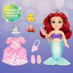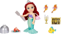 L’eroina amata del classico Disney La Sirenetta arriva in una dolce versione da 16 cm. Ariel ha braccia, testa e anche mobili, così può assumere facilmente diverse pose. Il set include ricchi accessori per giocare sia in mare che sulla terra: coda e top intercambiabili, vestito rosa, scarpine, tiara, pettine – il “dinglehopper”, borsetta a conchiglia, cupola argentata per servire e piccole figure degli amici.
