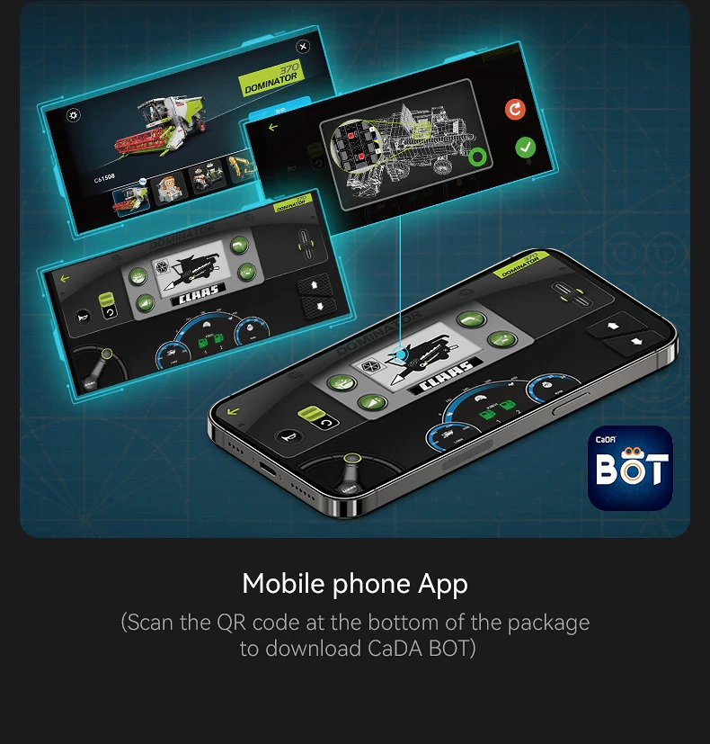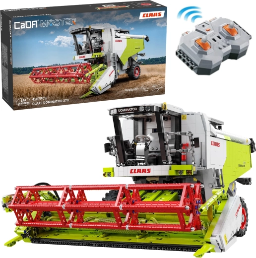 Questo grande set tecnico CaDA riproduce i dettagli studiati della vera mietitrebbia CLAAS Dominator 370 – dall’apparato falciante rotante al tubo di scarico, fino al telaio con robuste ruote. Grazie al controllo duale puoi utilizzare il modello sia con il radiocomando RC da 2,4 GHz incluso, sia tramite app Bluetooth con portata oltre 25 m.