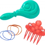 - Set completo per lo styling: testa per acconciature, spazzola ispirata all’oceano, pettine ed elastici.