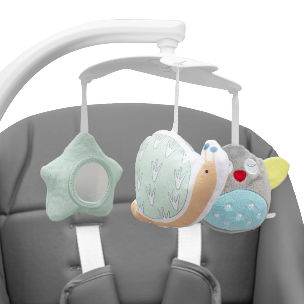 Rivestimento facilmente lavabile, 4 posizioni di inclinazione dello schienale, seduta spaziosa e solida struttura a “A” garantiscono comfort e sicurezza ogni giorno. Melodie integrate, diverse velocità di dondolio e giochi sospesi favoriscono relax e sviluppo del bambino.