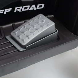 Ruote larghe “off-road” per sicurezza su diversi fondi e sedile ergonomico in eco-pelle per comfort di guida.