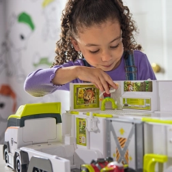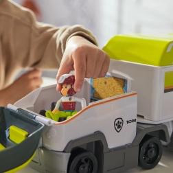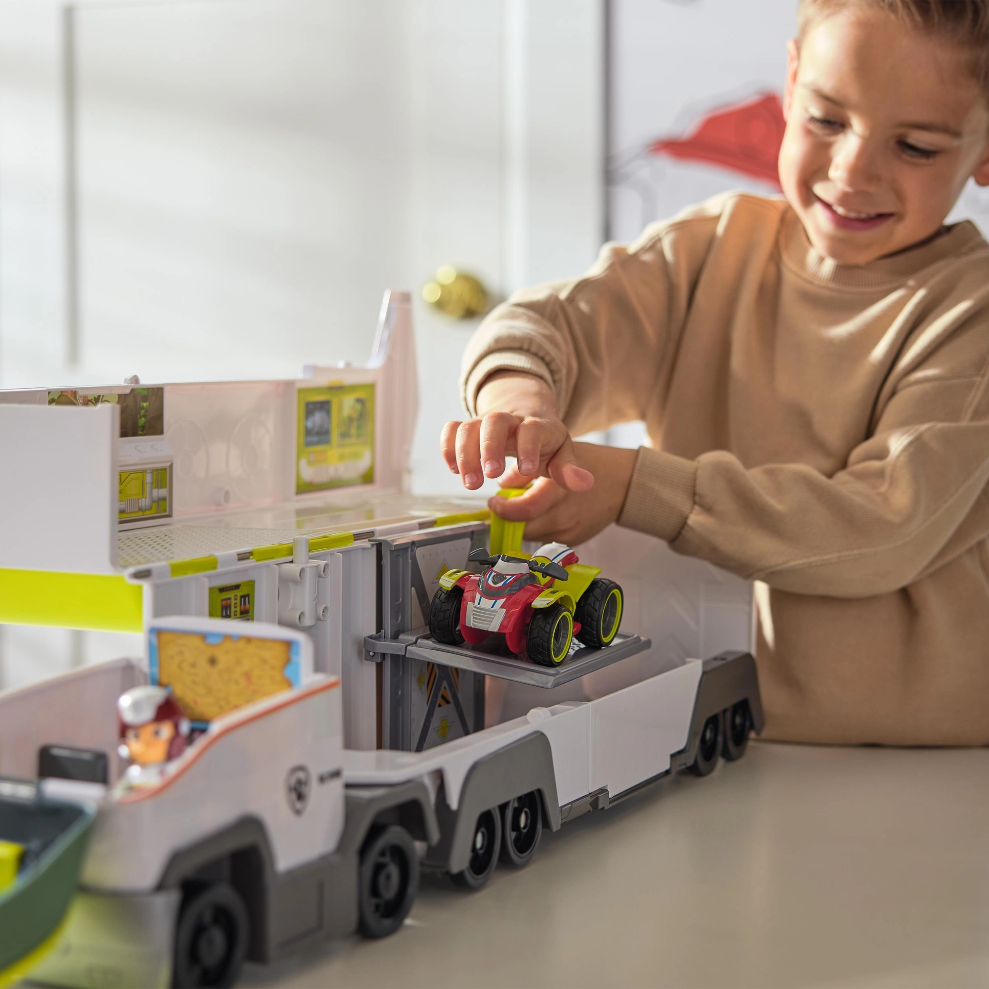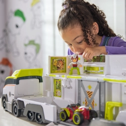 Il trasportatore si apre in una spaziosa stazione di gioco con pannelli, rampe e spazio per personaggi e veicoli. Ideale per il rapido dispiegamento di tutta la squadra di PAW Patrol.
