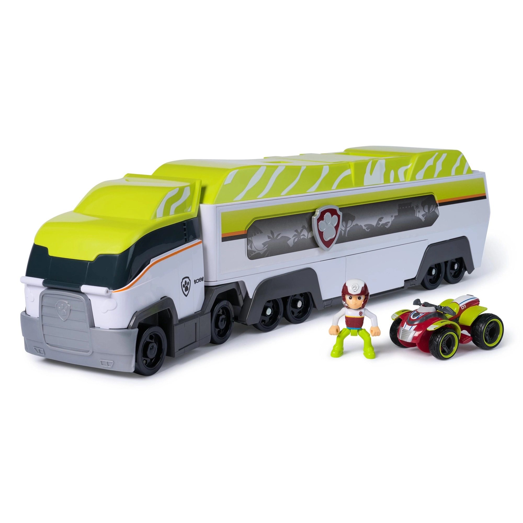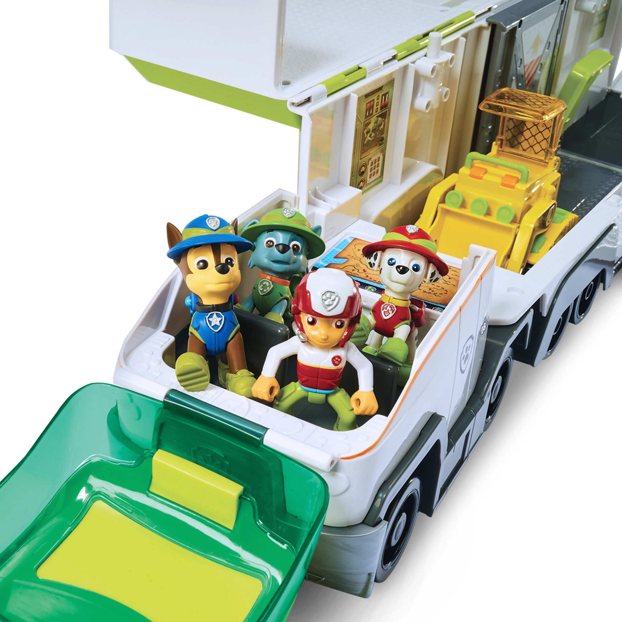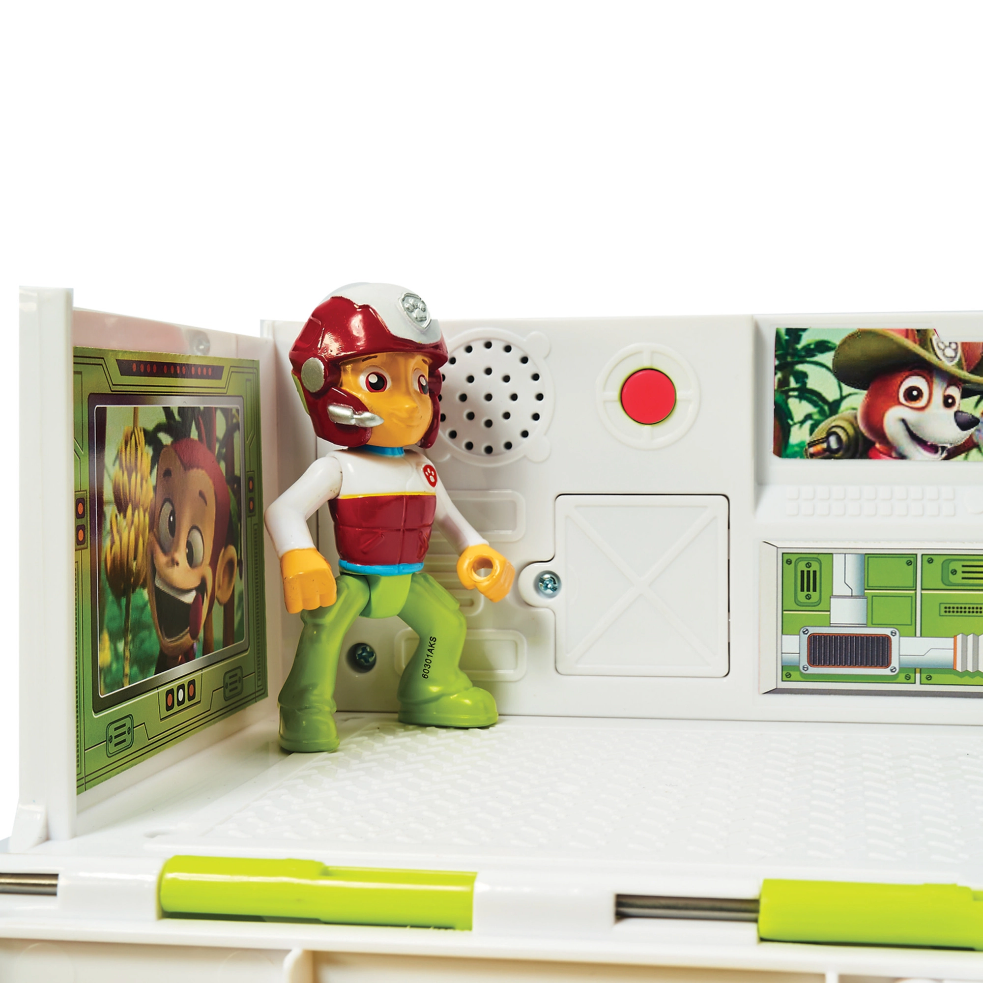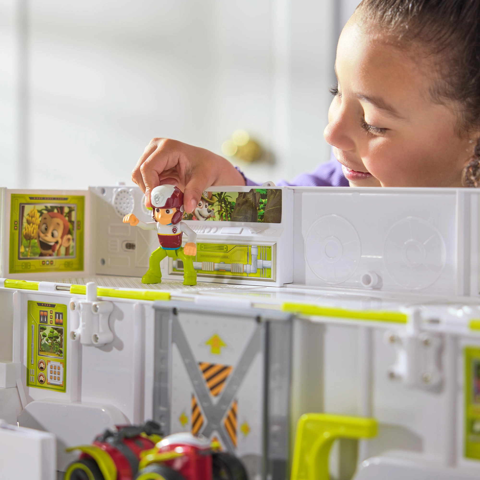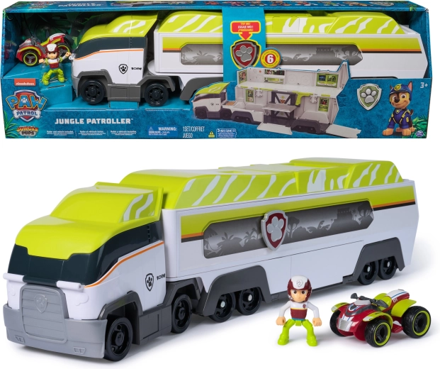 Il design nelle tonalità di verde e marrone si abbina all’ambiente della giungla e le grafiche decise sottolineano il carattere avventuroso. Il modello è progettato per facile trasporto, stoccaggio fino a 6 veicoli PAW Patrol (venduti separatamente) e gioco fluido grazie alle ruote scorrevoli e alle sezioni apribili.